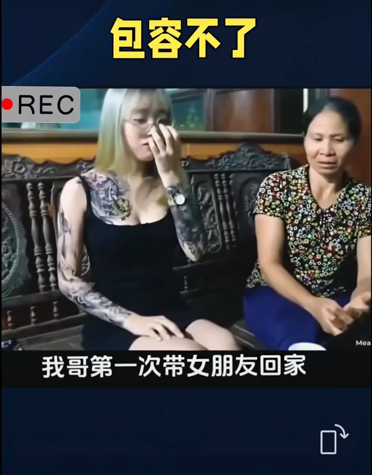男子第一次带女朋友回家,当女朋友脱下外套露出双臂纹身时,男子母亲惊呆了,上一秒还