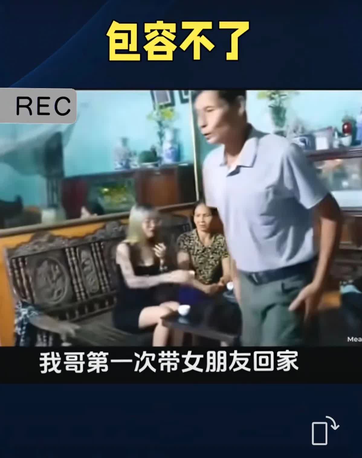 男子第一次带女朋友回家,当女朋友脱下外套露出双臂纹身时,男子母亲惊呆了,上一秒还在笑,下一秒就笑不出来了,满脸的不高兴。男子的父亲看都不想看她多一眼,立即起身走了。 看得出男子父母是非常不喜欢这纹身女子,是的,一般正常家庭是不能接受有纹身的人做媳妇的,也难怪男子父母满脸的不高兴。 看网友是如何评价的,“公公都看不下去了,我走了”,“纹身的女一律不要”,“女人不纹身,纹身不一定好人”,“只要是正常的人,这玩意连…都不会要”。