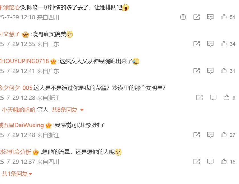 这才是,今天娱乐圈的大瓜! 单身的陈晓,可能要有追求者了。 这个追求者也是个大明星。 名叫赵樱子。 赵樱子在直播间里亲口曝料:“我喜欢陈晓的这种长相,合作过很多男演员,第一眼沦陷的就是他,我对他一见钟情了,他现在单身,可我不敢跟他联系。” 此番言论,一下子点燃了吃瓜群众的好奇心,大家纷纷查看赵樱子和陈晓的关联,发现两人合作过两部戏,一个是《神雕侠侣》,另一个是《百炼成钢》,不过,两人的对手戏并不多,估计在片场也没多少机会相处。 所以,两人的关系应该只是见过,但不熟的状态。 赵樱子今年34岁,陈晓38岁,年龄上也比较般配。 只是,单相思的赵樱子,目前还没有勇气迈出第一步。 俗话说:女追男,隔层纱,赵樱子应该大胆一点。 不过,网友并不看好女方,纷纷在评论区留言: “对陈晓一见钟情的多了去了,让她排队吧” “发颠呢吧?刘学义追她,成毅对她有感觉她就暗恋成毅,现在又一见钟情陈晓?” “这女的张口就来,散了吧。” 那么,你觉得这一对有戏吗?