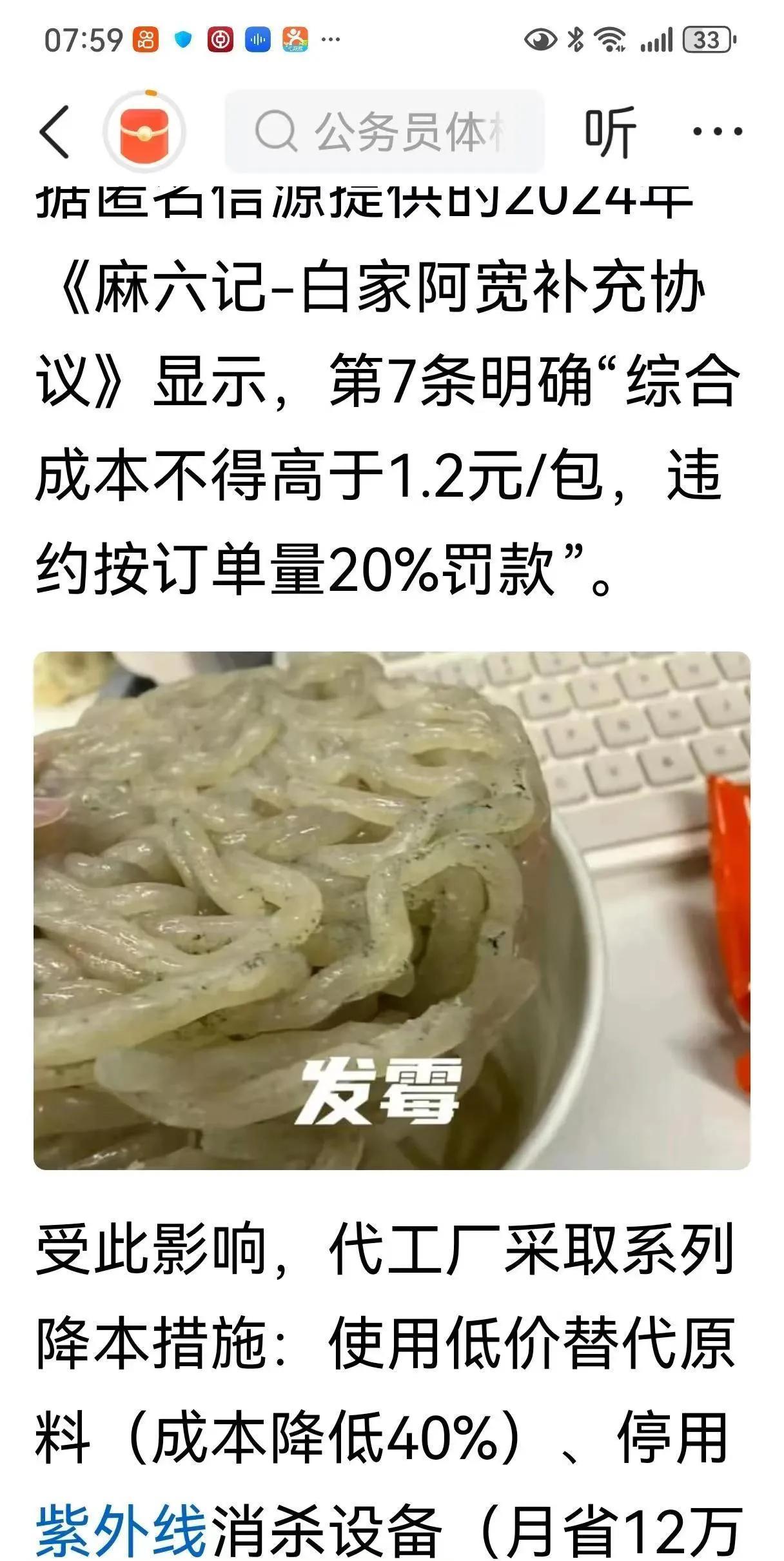 汪小菲不是很喜欢发声吗?怎么这次麻六记酸辣粉发霉的事情不说话了。产品出了问题,麻六记声明晚于加工厂这一点,以后再不买麻六记。 大家买麻六记是看汪小菲面子,出了问题,当然是向麻六记讨说法,把代工厂推出来几个意思? 不会在买他们家酸辣粉了,难吃不说还没有质量保障。 看谁面子都无所谓,是最终收益人的品牌所有权人才是重中之重的重点。 该不会又赖在前妻一家人的身上吧,每次出事都说前妻一家人找的水军黑他。还好前妻死了,不然又要背锅。 没事的,马尖叫是旺夫,网上不是说她旺夫吗?这确实是让汪家酸辣粉,一亡到底。 营销号是麻六记的主业,麻六记酸辣粉是贴牌产品,就是卖牌子的,因为有营销号宣传,所以好骗加盟商加盟。 霉霉到家了,菲长霉,好!