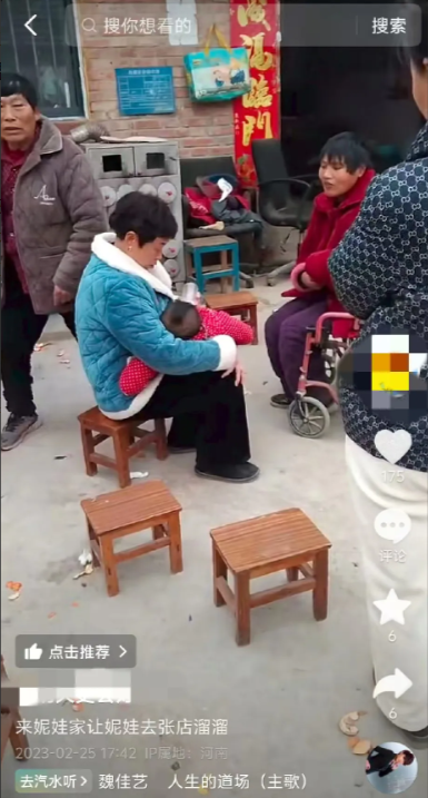 树兰家的好邻居板嫂又开启直播了。听了一会儿,感觉实在是无趣,就退出来了。从板嫂的第一次(几天以前)自己直播我就关注了她,她喜欢拍视频,作品数量不多,大部分都是记录自己与家人、朋友的视频。不过在2023年2月18日、20日、25日有三个和树兰家相关的视频,记录的是板嫂去树兰家看望妮娃,三个视频中有两个都拍到小三行的干妈在树兰家给5个月大的小三行喂奶,由此能看出干妈和树兰家的往来还是比较频繁的。听声音周围还有其他人,这也表明树兰和邻里之间也常有往来,这其中就有板哥和板嫂。最惹人注目的是树兰家院子里和院子外的大沙发,那个让妮娃害怕极了、胆战心惊的破沙发…… 一晃两年半的时间过去了,那时的树兰和妮娃看起来要比现在年轻许多(其实对比一下我们自己,谁又不是变老了很多呢)。树兰历经起伏,终于找到了适合自己的最佳合作伙伴海泉夫妇,并且合作得很愉快。真心希望他们的合作能够长久些,再长久些,不为别的,只为小三行能够衣食无忧,健康成长! 另外介绍下板哥这个名字的由来,因为此人是个家庭作坊的小老板,所以我叫他板哥,这是个褒义的称呼,上过学的都懂,黑粉也不要拿这个称呼说事儿了,总比某娘家人口中的某爹、某娘、某祖宗、某某某强一万倍吧。