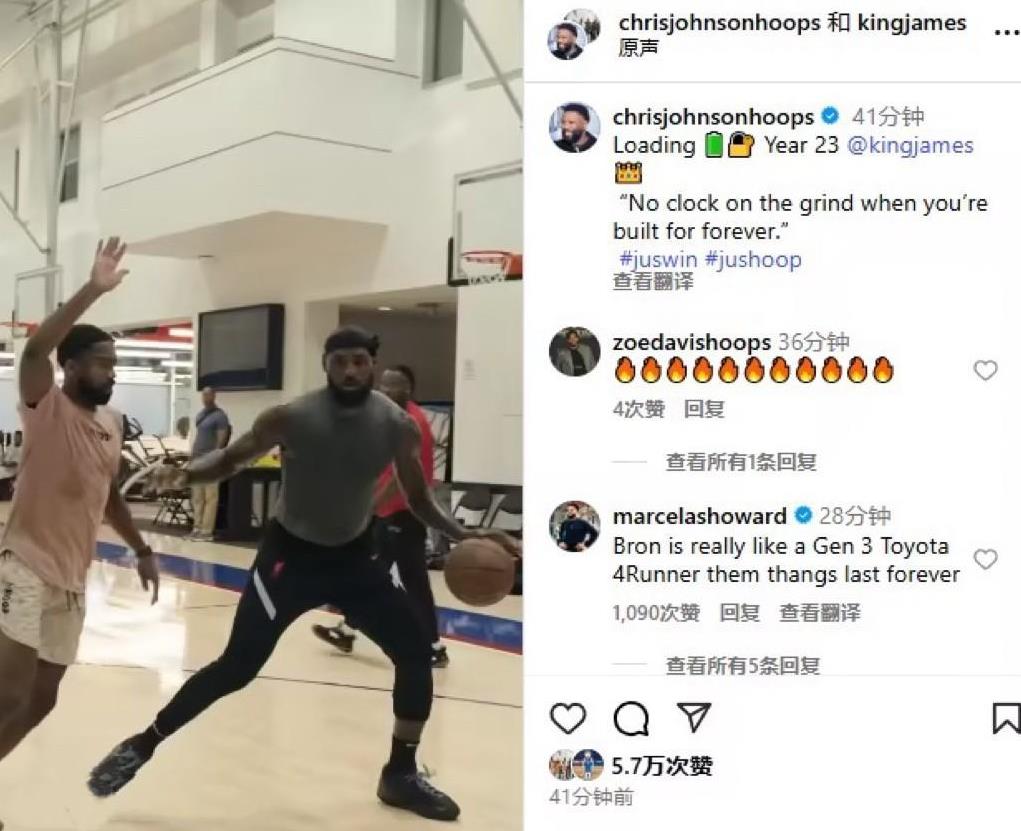 #头号创作者激励计划# 詹姆斯满满正能量来了![尬笑][尬笑] 先是播客节目鼓励年青人不要走捷径,要享受奋斗的过程。然后从欧洲回来之后,凌晨4点多立马开练迎新自己的第23季。 球迷在训练摆拍照下面回复:这次,别辜负了这么早起床,可要认真点训练,尤其是3步上篮,别数错了又走出个4、5、6、7、8步出来。[捂脸][捂脸]