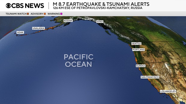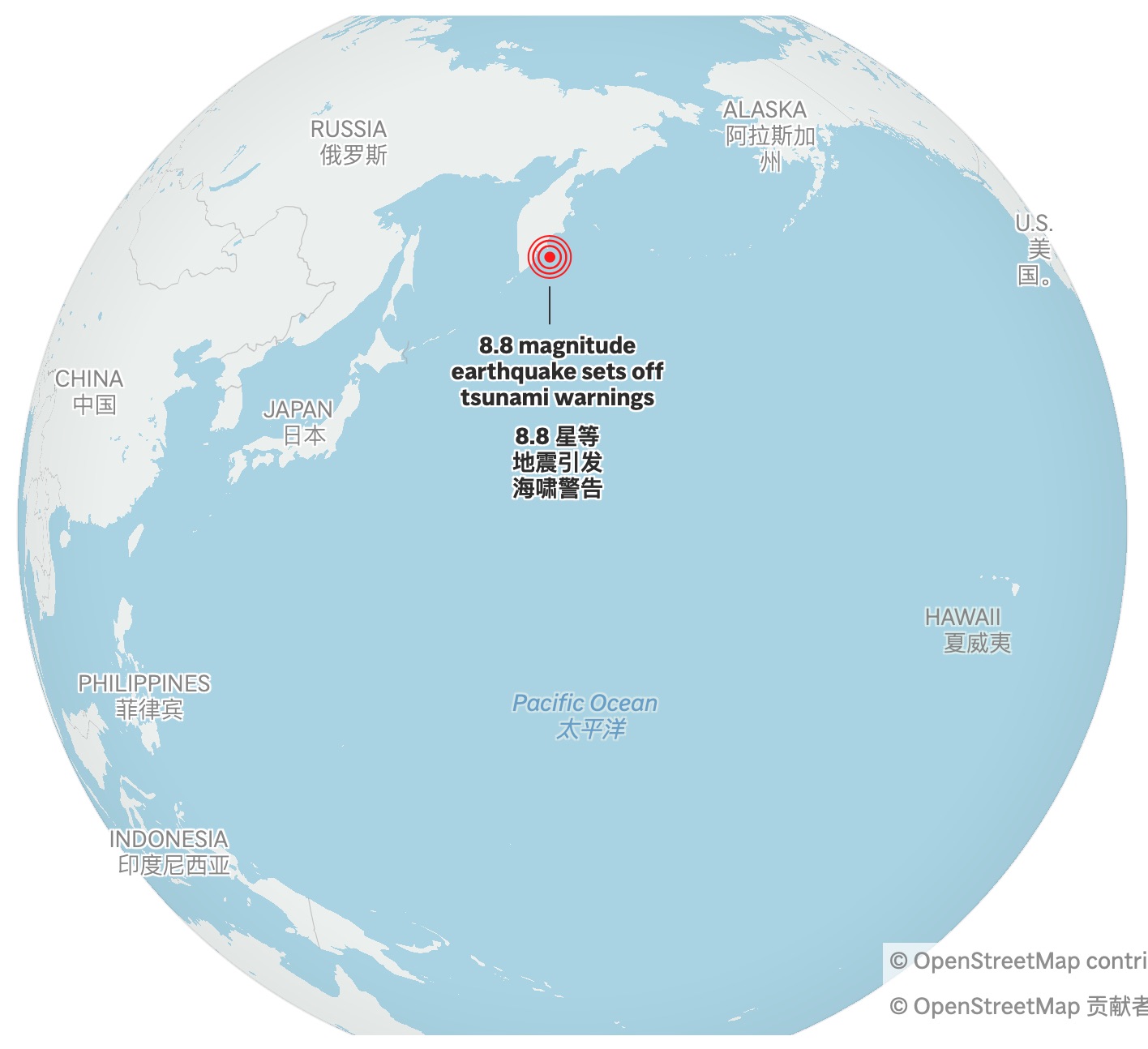 当地时间周三(7月30日)上午8点25分,俄罗斯堪察加半岛附近发生8.8级的强烈地震,促使日本气象厅发布海啸警报。美国国家气象局也向夏威夷州和阿拉斯加部分地区发布了海啸警报。