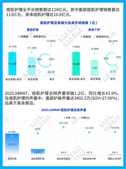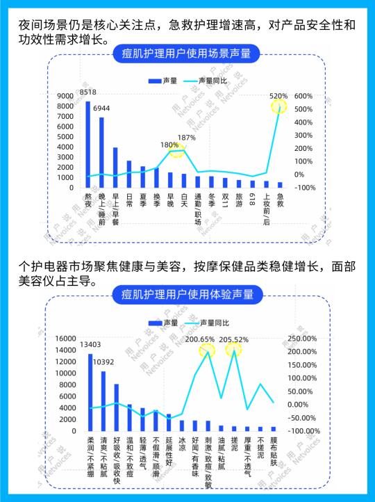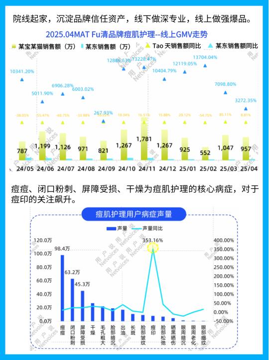 病症:痘痘(29.19%)、闭口粉刺(18.74%)、痘印(声量+353.16%!)