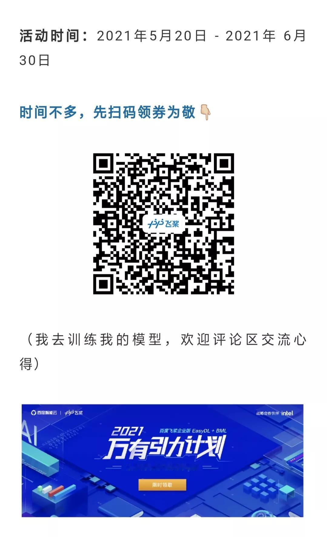 百度BML全功能AI开发平台 百度飞桨企业版《2021 万有引力》活动来袭,飞桨企业版( EasyDL+BML )免费送你价值 10000 元体验券! 详情: