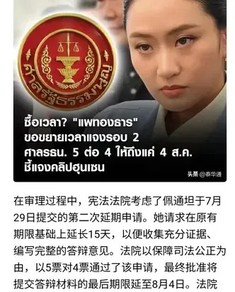 啥?佩通坦竟然被泰国法院盯上了!这简直像电视剧一样,剧情反转太快了吧!她可是现在泰国政府的关键人物,一举一动都牵动着大家的心。这次延期申请,简直是给她争取了喘息的机会,能不能翻盘,就看她接下来的操作了!