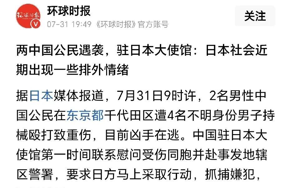 中国的旅游景点少吗?不好吗?2名中国公民在日本遭受不明身份的4名日本人殴打重伤。