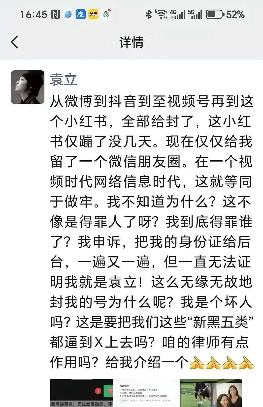 几乎所有社交平台都不认袁立这个人了! 袁立长期被多平台“封禁”,她多次尝试申