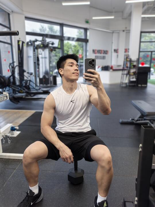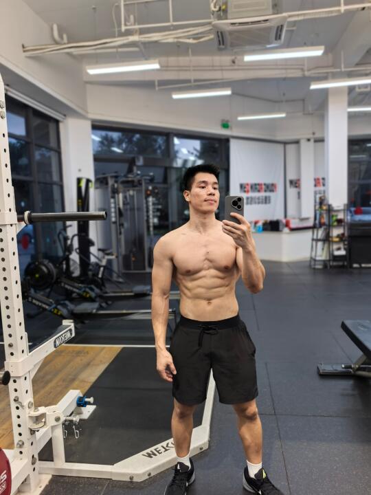 今天全身力量训练✅ 上肢:胸(俯卧撑、杠铃平板卧推) 下肢:背(引体向上、坐姿划船) 下肢:臀腿(保加利亚蹲、哑铃深蹲、壶铃摇摆)