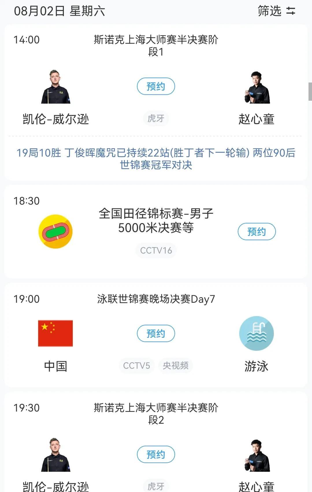 明日飞翼战狂热斯诺克赵心童战威尔逊泳联田径多场等焦点赛事关注