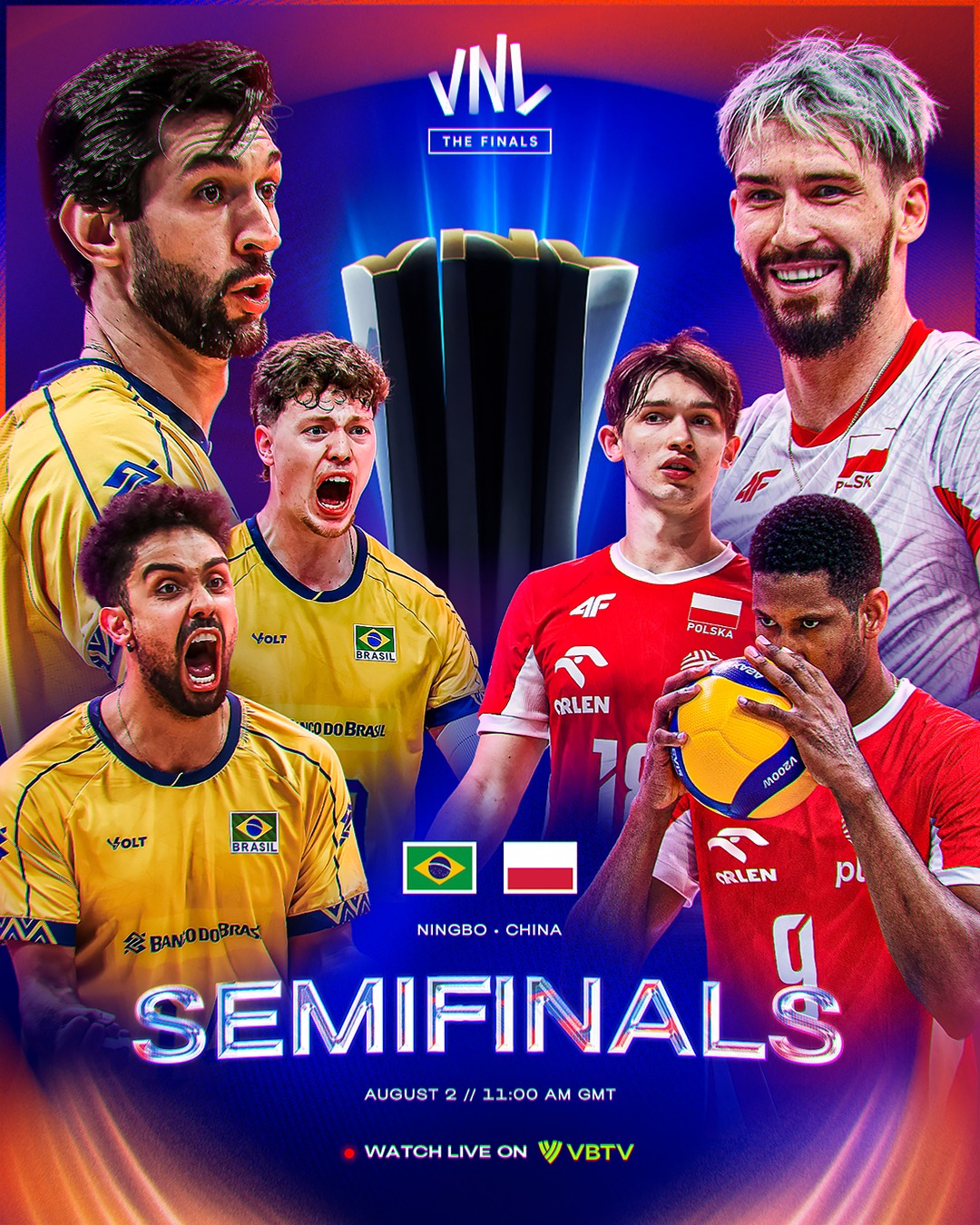 【赛事预告:世界男排联赛是半决赛】 2025世界男排联赛宁波总决赛 8月2日迎来两场半决赛的较量! 第一场:15:00 意大利vs斯洛文尼亚 第二场:19:00 巴西vs波兰 观赛渠道:腾讯体育;企鹅体育 猜猜哪两支队伍能会师决赛? 我猜意大利+波兰,最终冠军波兰! MVP颁给弗纳尔或者萨萨克 今年国际排联特别偏爱弗纳尔~ 各种海报都把他推在首位!