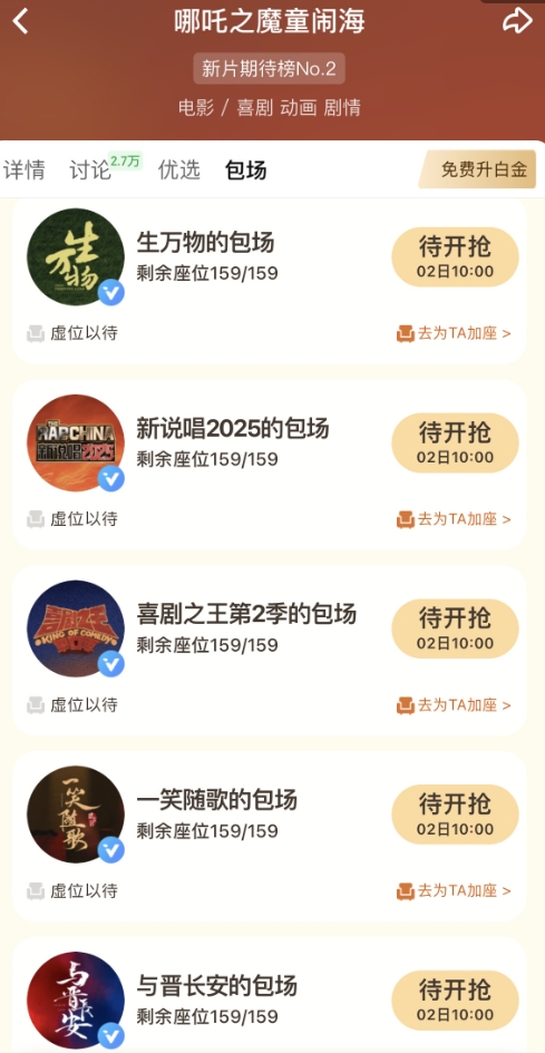 桃厂给平台内即将播的剧和综艺都下了任务,都要给《哪吒2》包场159座,理由是庆祝《哪吒2》票房破159亿,自己的项目,给自己平台充会员,这种应该就不需要《哪吒2》还这个人情了。