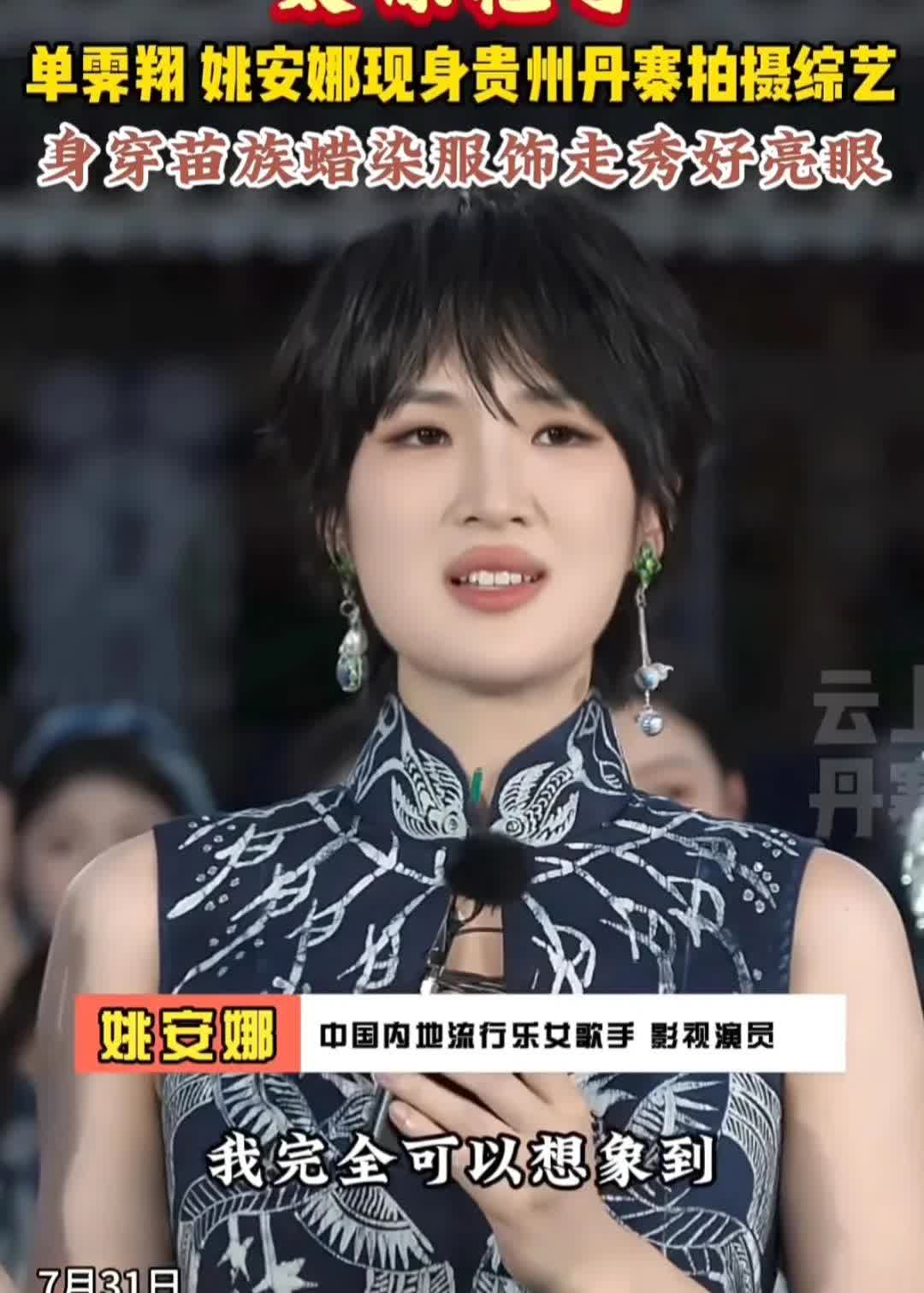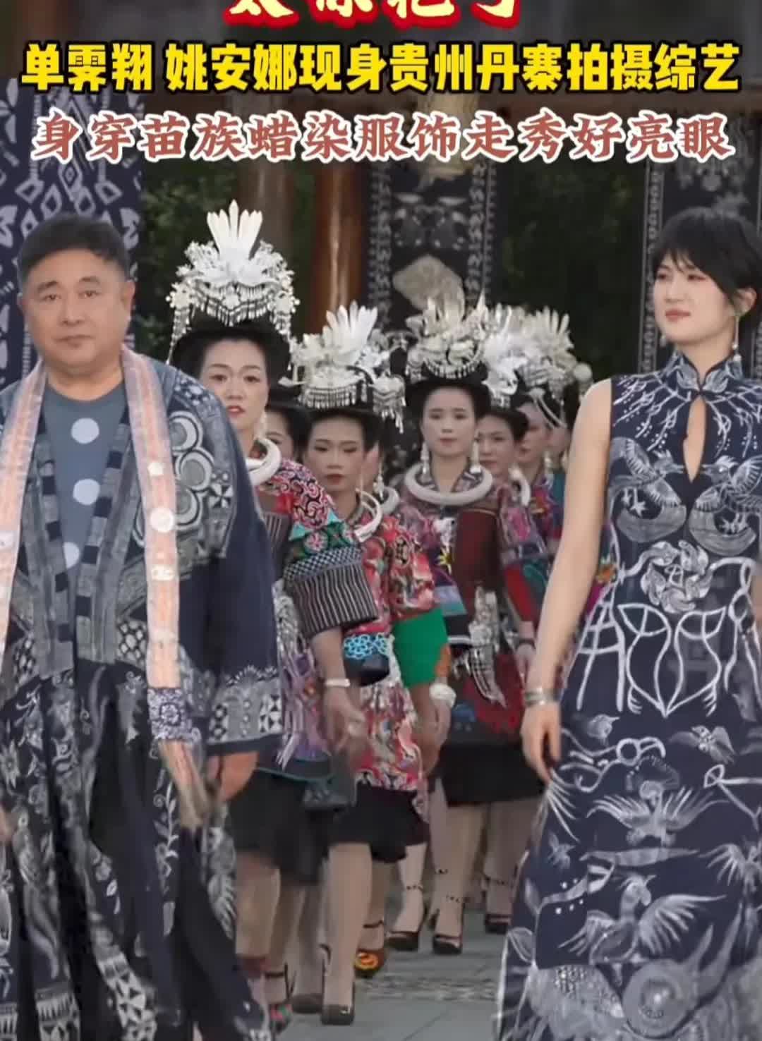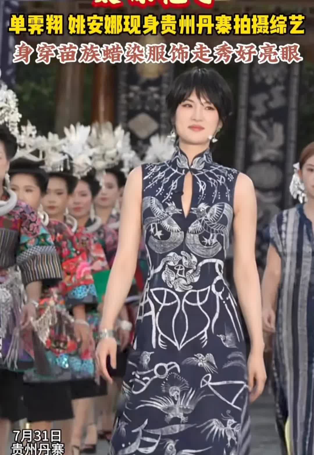 姚安娜现身贵州丹寨,身穿苗族蜡染服饰走秀像女王。 对于穿的这件衣服,姚安娜说可