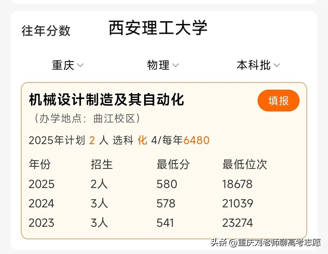 同样是机械设计制造及其自动化专业,陕西理工大学在重庆市2025物理类的录取分居然比西安理工大学还高3分。难道是因为以省命名的大学比以市命名的大学水平更高?还是名字更显大气?亦或是由于陕西理工首次开设该专业且仅招收一人而出现了“大年”现象? 2001年,汉中师院与陕西工学院合并组建了陕西理工学院,15年后才更名为陕西理工大学,2006年才获批硕士点,整体实力较为薄弱,又地处陕南小城汉中,真不知为何如此吸引重庆考生!许多人可能会鼓吹陕西工学院与北大关系密切,实际上虽有少许渊源但不过是徒有虚名罢了。当然,陕西理工的机械专业算是该校的王牌专业之一,是国家级特色专业,可直至现在都没有博士点,在第四轮学科评估中也未上榜,并且没有推免资格,综合来看,确实不值583分。 西安理工是老牌的工科强校,原本直属于机械部,机械、电气、水利、管理、计算机、电子等学科都颇具实力,可以说是双非院校里较为顶尖的工科院校。它由原北京机械学院与原陕西工业大学合并组建为陕西机械学院,1994年就更名为西安理工大学,机械更是其王牌专业之一,在第四轮学科评估中为B,机械专业的保研率超过8%,就业质量整体较高,部分毕业生进入汇川、奇瑞、比亚迪等知名企业,可谓性价比不低。 另外,兵工七子之一的西安工业大学机械卓越班也只需577分,长春理工、中北大学的机械专业分别为570分、569分;原机械部直属的哈理工、沈工大也仅为565分、557分,可以说性价比极高!原铁道部直属的华东交通、石家庄铁道也只有569分、558分!其他的就不一一列举了,这个583分真的很亏。绝不能望文生义,总认为省字头的大学一定比市字头的大学强,要具体到学校去分析其专业,同一个专业在不同学校的差距实在是太大了。