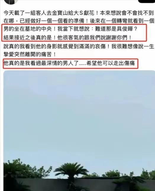 欧巴无论做什么都是错,太可怜了! 大S与汪小菲离婚不到三个月就和欧巴具俊晔好上,具俊晔被骂是第三者,其实是大S对他情未了,想吃回头草,主动找上他,恰好他还没有女朋友、大S又恢复单身,何乐而不为呢 ? 大S和具俊晔结婚后,具俊晔没有正式的工作,被骂吃软饭、花汪小菲给俩孩子的生活费等等。 大S病逝后,具俊晔悲痛欲绝,抱着大S的遗体几度晕倒过去;大S下葬后,具俊晔天天墓去陪伴大S ,他被骂“做戏”。 大S的妈妈黄春梅如此评论女婿具俊晔:欧巴真的重情重义,人生夫复何求、真爱。