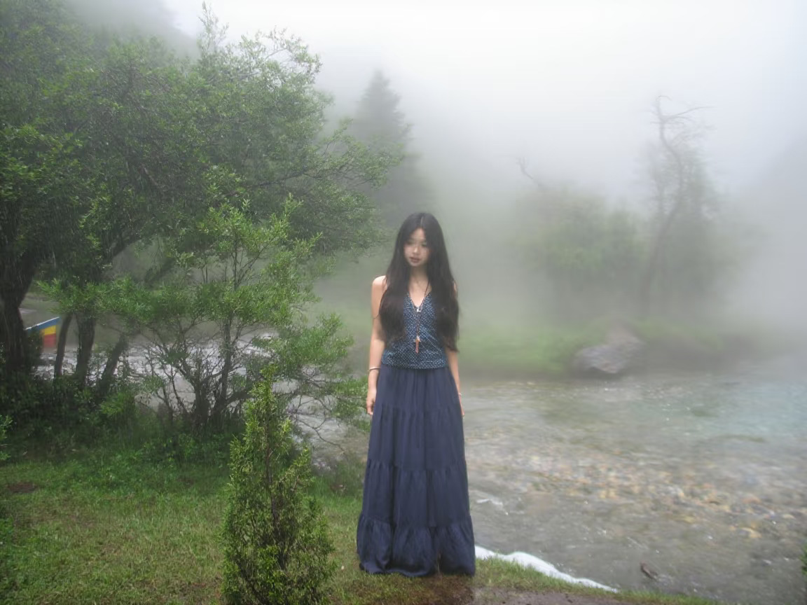 白衫是薄瓷的容器盛着心跳与呼吸绿裤是柔韧的藤缠裹着骨骼的倔强~柳丝拂