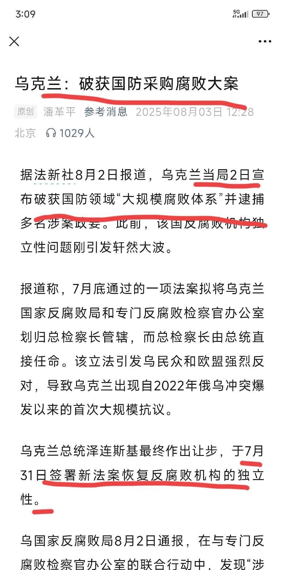 才过2天,反腐机构便宣布破获军方采购腐败窝案,抓捕了议员、地方高官、国民警卫队军官等4人,被抓的车上全是外币。 这帮人串通一气,在无人机采购合同中虚报30%的价格作为回扣瓜分,不顾前线官兵死活,真是“前方吃紧、后方紧吃”。 就这帮蛀虫,前线乌军怎么能有足够的后勤补给,值得注意是,类似的事在乌克兰高层不少,深查下去怕是很多高官都会卷进去,影响整个战事。 泽连斯基现在处于内外交困的地步,所以着急呼吁停火。 #头号创作者激励计划#