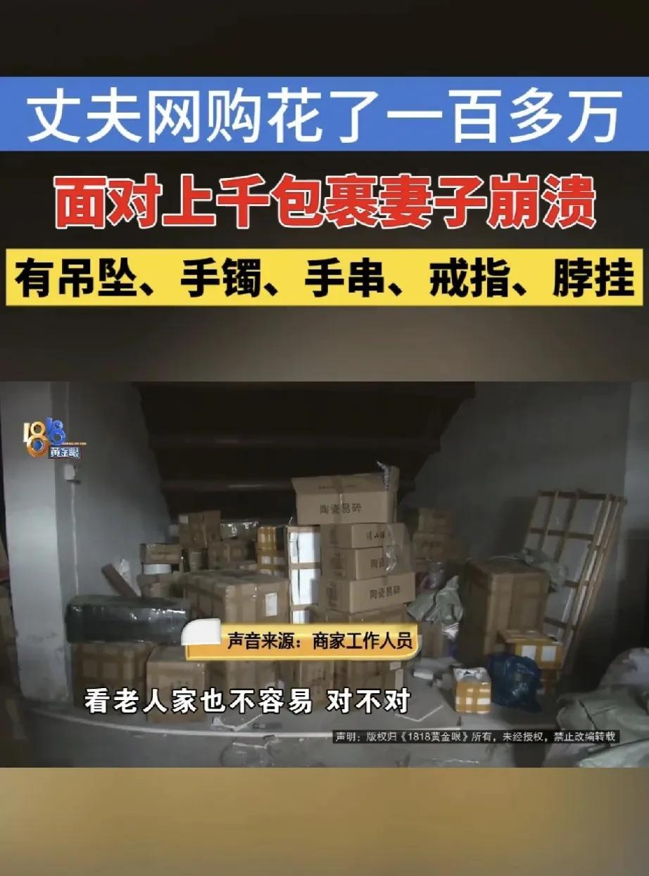 老人手上有钱,也很难守住!六十岁老汉把一百多万存款,全部花在抖音购物上了,买几千件珠宝玉器字画瓷器,连快递箱都没拆,直接堆在家里的阁楼里。直到他老婆被亲戚追债,才知道,一辈子的积蓄被老公霍霍完了。 老婆抱怨道,自己不识字,每天不在家,在外辛苦打工,想给儿子多积累一些。没想到老公趁她不注意,不仅花光积蓄,还欠了外债。 子女一定要多关注老人的动态啊!每天拿快递,家人竟然不知道,还把自己的账号取名为“聚宝盆”。这几年疯狂网购,账单打印出来足足几百页。单单2023年的6月,就买了16w。