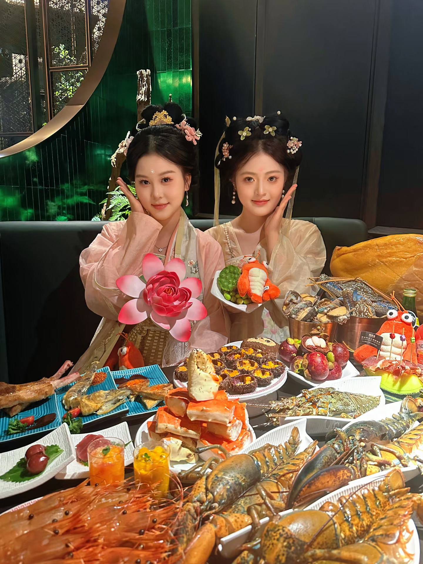 又来分享我的宝藏好吃了 最近在杭州万象城四楼新开的华东首家雍容荟,真的是把我震惊到了,鲜活波士顿龙虾、鲜活小青龙以及超嫩海胆都可以无限畅吃,属于是一顿饱口福了,就算是小胃口宝宝也不用担心,咱们主打吃一个精。 谁再说杭州是美食沙漠,我不服[吧唧R] 还有随机npc互动,小青白蛇两个人性格太可爱了