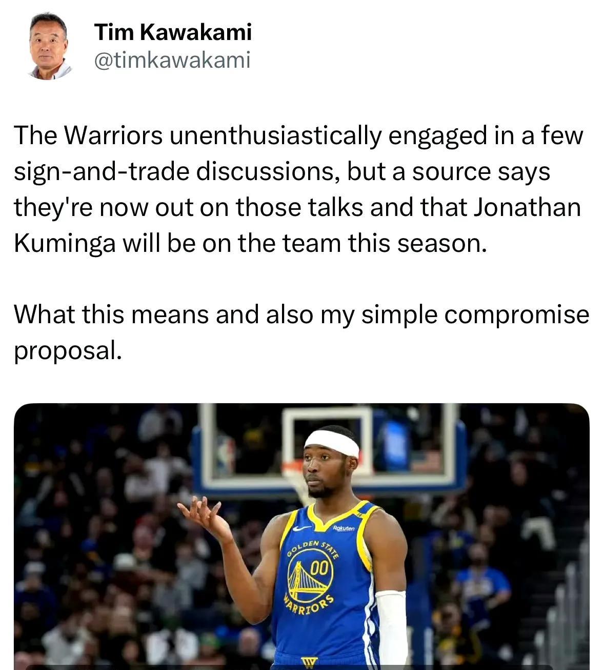 勇士记者TimKawakami:库明加今年夏天不会被勇士队交易,球队计划让他留