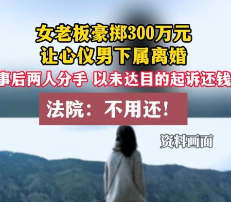 “电视剧都不敢这么演!”重庆,一女老板看上年轻男员工,两人发生了关系,女老板想让男子离婚,岂料,男子妻子得知后表示:只要女老板给她300万,她就和丈夫离婚!女老板痛快的给了钱,可谁知,她与男子仅同居1年后就分手了,于是将男子前妻告上法院,要求归还300万,法院判决亮了! 江城重庆上演了一场真假情感与金钱纠葛的闹剧,女老板钟女士(化名)在事业上呼风唤雨,却没料到感情里会栽跟头。 年轻员工李先生(化名)本以为自己找到真爱,却在情欲与家庭之间举棋不定,而他的妻子,也在这场风波中出人意料地成为了谈判高手,笔三百万的离婚补偿,竟把所有人都拽进了舆论的炙烤台。 钟女士(化名)出身普通,大学毕业后便义无反顾地扎进职场,凭借果敢与智慧,从基层干到区域经理,最终自己创业,成为本地颇有影响力的女企业家。 她对事业的要求近乎苛刻,可一旦遇到李先生(化名),便难以自拔,李先生(化名)年仅二十出头,举手投足带着书卷气,干练中略带文艺气息。 两人在项目合作中渐生好感,互相依赖、互相欣赏,爱意在日常的并肩奋斗里悄然酝酿。 可谁也没想到,这段恋情的基础竟是婚外关系,某天,钟女士(化名)提起一旁默默敲代码的李先生(化名),语气里满是宠溺:“我真想让你跟我一直在一起,不要回那个小家了。” 钟女士(化名)说道:你要么离婚手续,要么我走。李先生(化名)沉默良久,最终选择了钟女士(化名)。 李先生(化名)的妻子知道后先是一愣,随即冷静地抛出条件:“三百万,否则一刀两断。”面对钟女士(化名)的质问,她理直气壮:“我当妻子也有讲究,你既然想夺走我的丈夫,就要付出代价。” 她当时被这一招“绞杀”得措手不及,却也不想放手这段轰轰烈烈的爱,遂二话不说,将三百万现金转入李先生妻子(化名)指定账户。 离婚协议签完那天,钟女士(化名)看着两人递来的离婚证,心里既欣喜又忐忑。 想到同居才一年,两人却因观念差异、生活琐事翻过无数次脸,争吵里,李先生(化名)说想回去和妻子复合,她说恨不得把财产都留给别人,终于,激情散去,二人黯然分手。 分手后,钟女士(化名)猛然意识到,自己与李先生(化名)前妻之间的“合同”还没消解,三百万,就这样变成了一笔“赠与投资”,她索性将前妻告上法庭,讨要回那笔“离婚补偿费”。 庭审中,她的律师提出:这笔钱系双方自愿签订的离婚补偿合同,虽出发点是破坏婚姻,但合同依法生效,前妻应予返还。 可李先生(化名)的前妻并未就此妥协,她提起上诉,强调自己当事人身份是“婚姻受害人”,用补偿换来的新生活应受法律保护。 二审开庭后,法官最终认为,本案虽有破坏他人婚姻的道德争议,却属于当事人根据自身权利意思自治的民事合同,无违法强迫或欺诈情节,应予支持,不用还那三百万。 有人以金钱解套,有人以感情当筹码,有人因爱付出得起,也有人付不起那沉重的代价,既要有热情,也得留几分清醒,不然下一笔“补偿”恐怕还会接踵而来。#我在罐头搞创作#