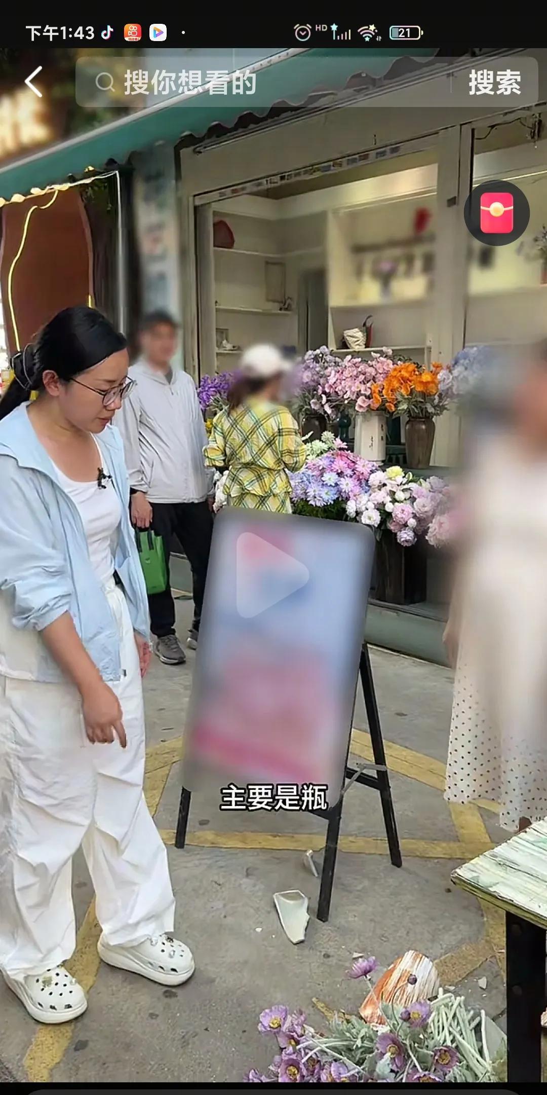 小娜这是被碰瓷了吧?花还没买呢就倒贴了70块[捂脸] 小娜到昆明花卉市场没走几步,就把花店摆在路边的花瓶给打碎了,结果赔给人家70块钱,还连连致歉。 红姐说有些花店就是故意把花放这么靠边让人撞的,确实,走着路也能把花给撞倒,这是放的多靠边呀,幸好小娜好说话,直呼算了算了,那就自认倒霉吧,以后注意点就行了。