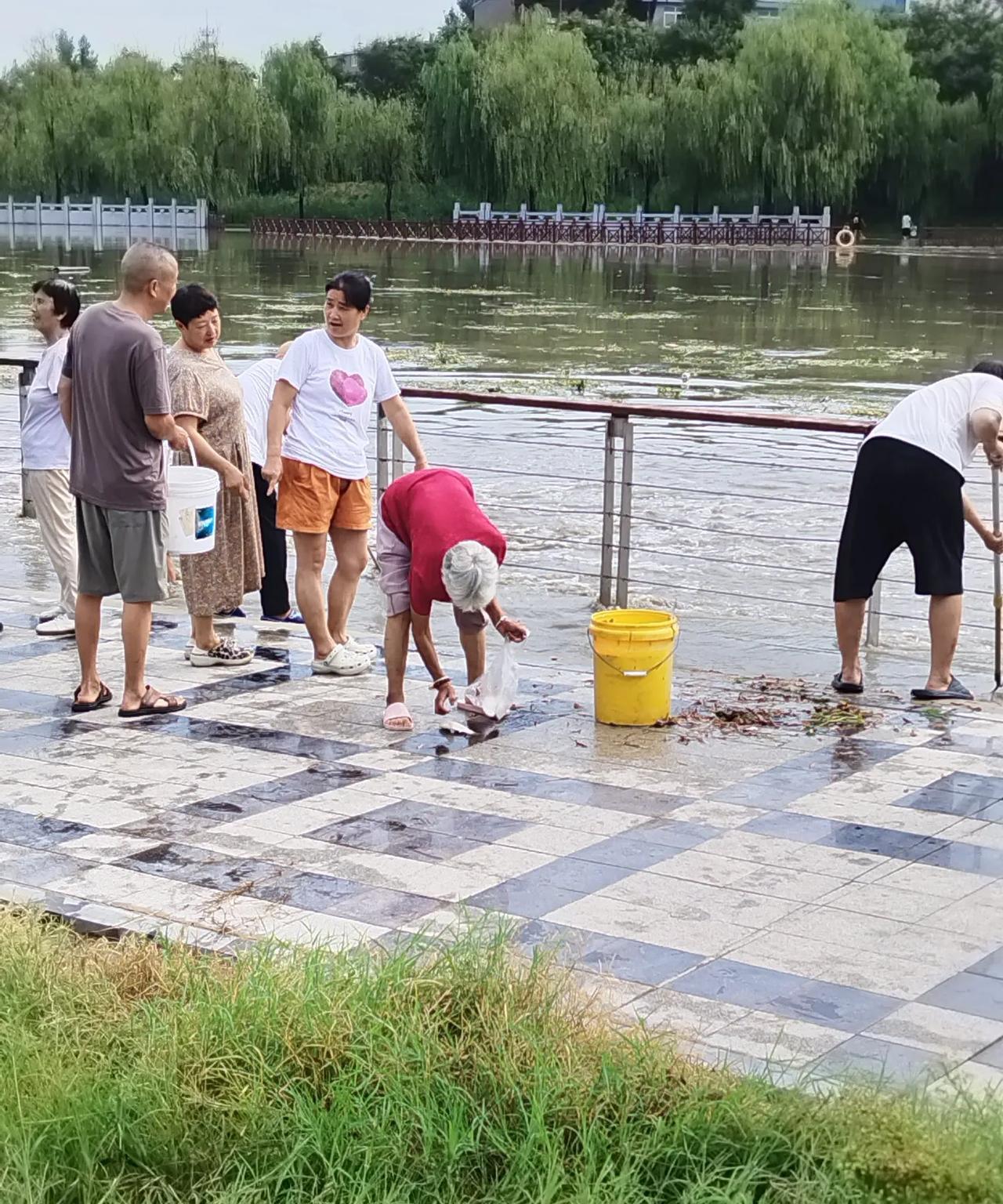 郑州昨天夜间下起了暴雨,部分街道积水,贾魯河水猛涨,天亮后,积水慢慢消退,河两岸捞鱼者增多,利用简易的工具,就可以捞到不少鱼。 这场雨缓解了旱情,对农作物有好处,可称为及时雨。