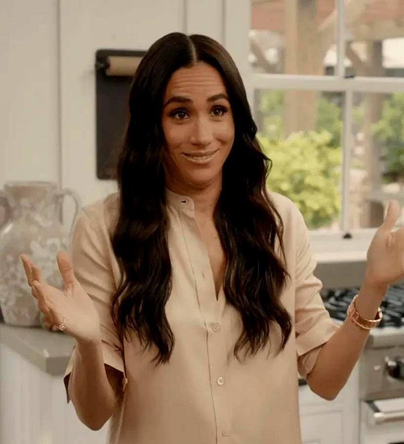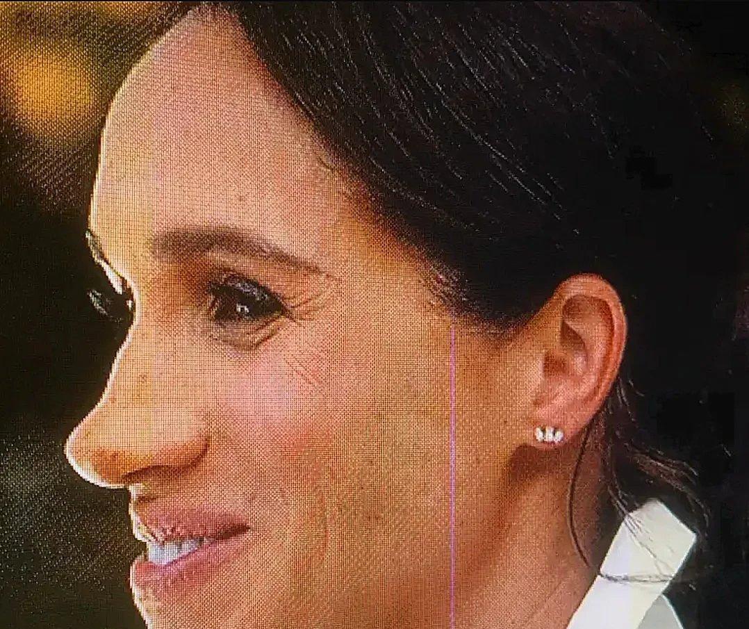 感觉就是在说公爵夫人![抠鼻] 梅根天生眉尾下垂,虽浓妆修饰, But一做表情即