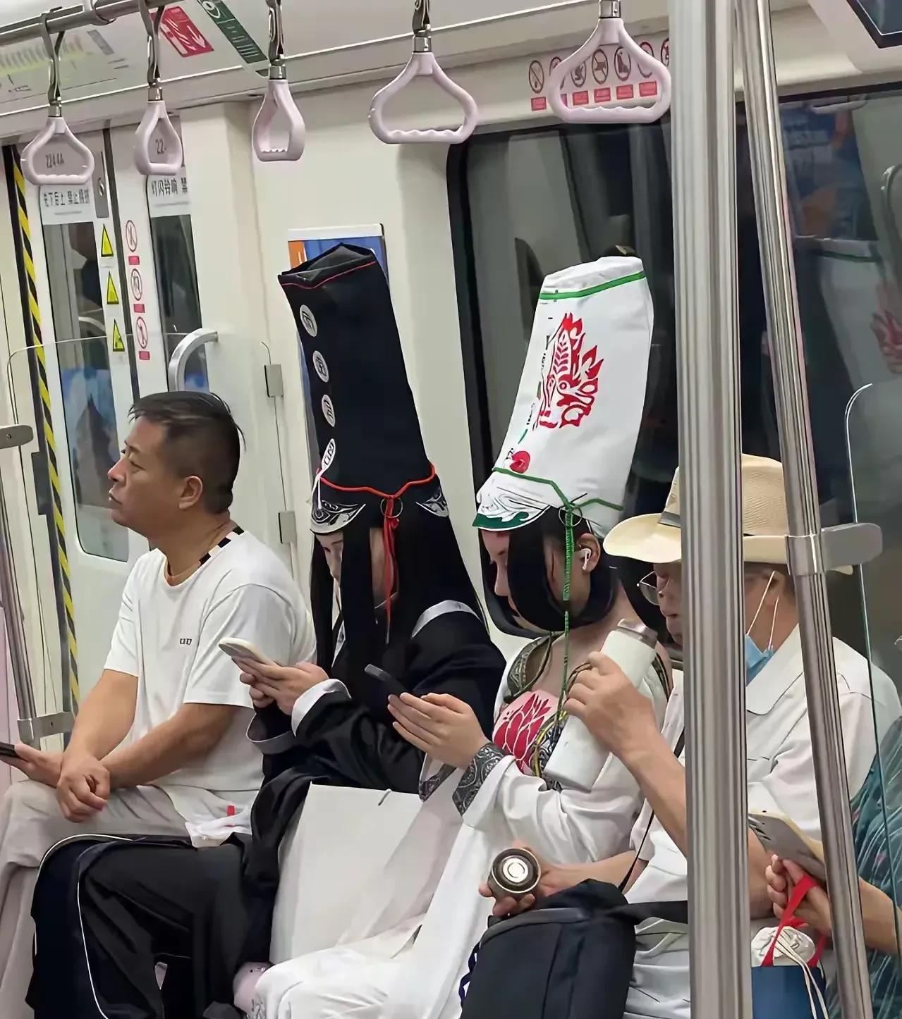 "大白天活见鬼啊[尬笑]"!这是发生在地铁上的一件事!两个年纪轻轻的孩子竟然穿了一身让人看了特别不舒服的衣服,旁边的人被她们这样另类的穿着惊得面无表情。 原来她们竟然选择了一身"黑白无常"的服装,尤其是戴在头上那高耸的帽子,让人看了头皮发麻。 这一幕也引发了网友的热议。 有的网友说:穿这种衣服的人都是什么心态? 有的网友说:黄泉路上无老少,别以为年轻就可以任性! 有的网友说:这是两个身高不够,拿帽子来凑的人吧[捂脸]。 要我说,现在家长的包容性还是很强的。这要搁我们小时候这样穿着出门,估计腿都要被打断。 虽说现在讲究穿衣自由,但这样穿还是感觉太过分了,要是我肯定下车重新换乘。 #头号创作者激励计划# 不过话说回来,看不惯归看不惯,还是有点不敢去招惹“黑白无常”![笑哭]
