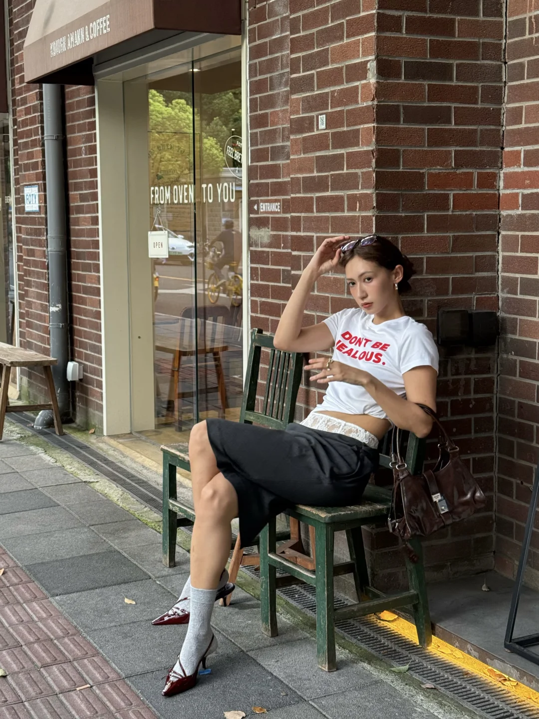 写真灰色衬衫搭配黑色短裙好身材吸睛