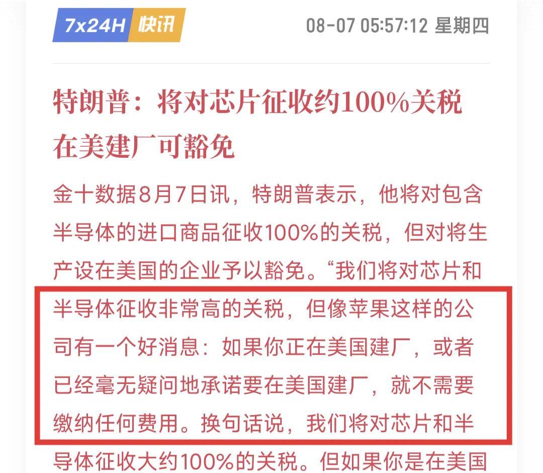 我去,懂王忽然硬起来了!看来Taco是吃腻了,昨晚宣布了一系列强硬措施: 1. 所有已经确定的对等关税,美东时间今天午夜起正式生效,不再拖延。 2. 以购买、倒卖俄油为借口,对印度再加征25%的惩罚性关税,总税率达到50%,8月27日起生效。 对此,印度政府发表声明称:该关税不公平、不合理、不正当,将采取所有可能的措施,保护国家利益。 莫迪老仙要到咱们这来,出席上海合作组织天津峰会,可能就是想寻找所谓的措施吧。 但之前的金砖会议、上合国防部长会议,印度一通瞎搅和,还想挖中国制造业的墙角,现在又跑过来示好,属于典型的平时不拜佛、临时抱佛脚,骑墙把墙给骑塌了,没啥卵用。 3. 对芯片和半导体产品,征收100%的关税,但对于在美生产的企业,以及将在美建厂的企业,其产品可豁免关税。 苹果立马宣布:追加1000亿美元本土投资,美国本土投资总额,从5000亿美元上升至6000亿美元。 受此影响,昨晚苹果大涨5%,并带动美国本土果链公司,如康宁玻璃、德州仪器等反弹。 4. 澄清对日本15%的关税,属于加征,即在现有税率基础之上,额外再收15%的关税,这与日本之前的理解完全不同,也与欧盟15%封顶的模式不一样。 什么叫父爱如山?石破茂这回应该是体会到了。 今天市场走得有点弱,大概率跟懂王的态度,以及后续的不确定性相关。 但这谈何容易,因为咱们手里有筹码,否则以懂王的嗅觉,能揩油他早就揩了,也不用这么一轮轮的谈判,博弈还将持续下去。 虽然市场情绪有点弱,但指数还是很强的:上证在银行的护盘下,顽强翻红,取得4连阳,成功突破3636前高,并朝着3674点稳步前进。 但要照这么种涨法,等到大盘3800点的时候,我估计得有超过一半的人亏钱,跑赢指数者,可能连5%都不到,风格确实有点极端了,不可能永远持续下去。 所以现阶段,保持耐心就好,真牛市中,各板块都有机会轮到,频繁的追涨杀跌,反而容易速亏,稳住别浪。