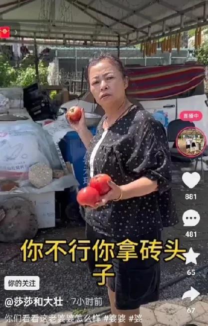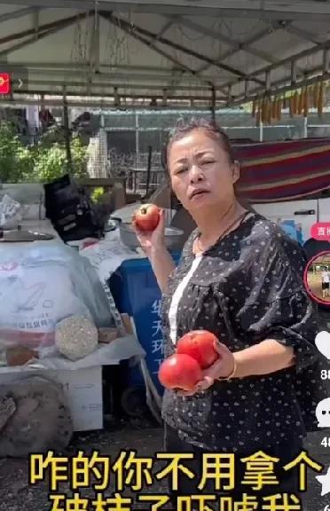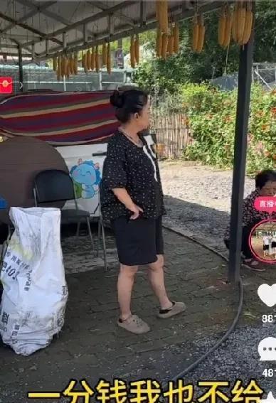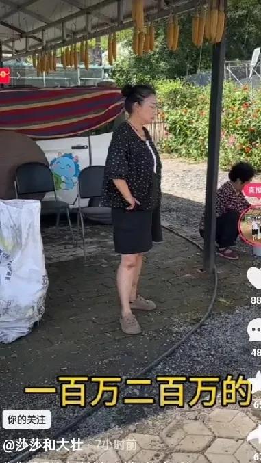 王百万气势汹汹,张牙舞爪地逼问莎莎:“我就问你,今天给不给钱?” 莎莎今天也很是硬气,说道:“不给,别说你要一百万二百万的,一分也不给。我有钱就不给你。” 王百万反唇相讥:“你们丧良心,诋毁我名声,别说一百万,就算五百万也不多。”莎莎针锋相对、义正词严地说:“这是我家,我想干什么就干什么,我现在就在录视频,谁让你自己送上门来的。就拍你了,而且一分钱不给。”我拍一个视频就挣一万二。 王百万简直都快气疯了,说:“你今天不给我钱,你试试。”接着就到地里摘了几个大柿子,走到莎莎面前,凶巴巴地问:“你给不给?”莎莎毫不示弱,说:“不给,拿几个柿子算什么,有本事你拿砖头打我。”王百万瞄准的是莎莎,实际是想打莎莎,可看到莎莎根本不在乎。她就是纸老虎,外表凶狠实际内心空虚,也怕真把柿子砸向莎莎后不好收场,于是转身就奔小房子去了。 连续扔了两个柿子后,还咋咋呼呼地回头问莎莎:“你到底给不给?”莎莎说:“不给!”王百万把最后一个柿子扔了出去,把门砸得山响。莎莎依旧坚持说:“不给。”王百万威胁莎莎说:“你们在市里的房子我都知道在哪。到时候我就去闹,不会让你们消停。”莎莎说:“你有本事你就去。”王百万这是没日子作了。