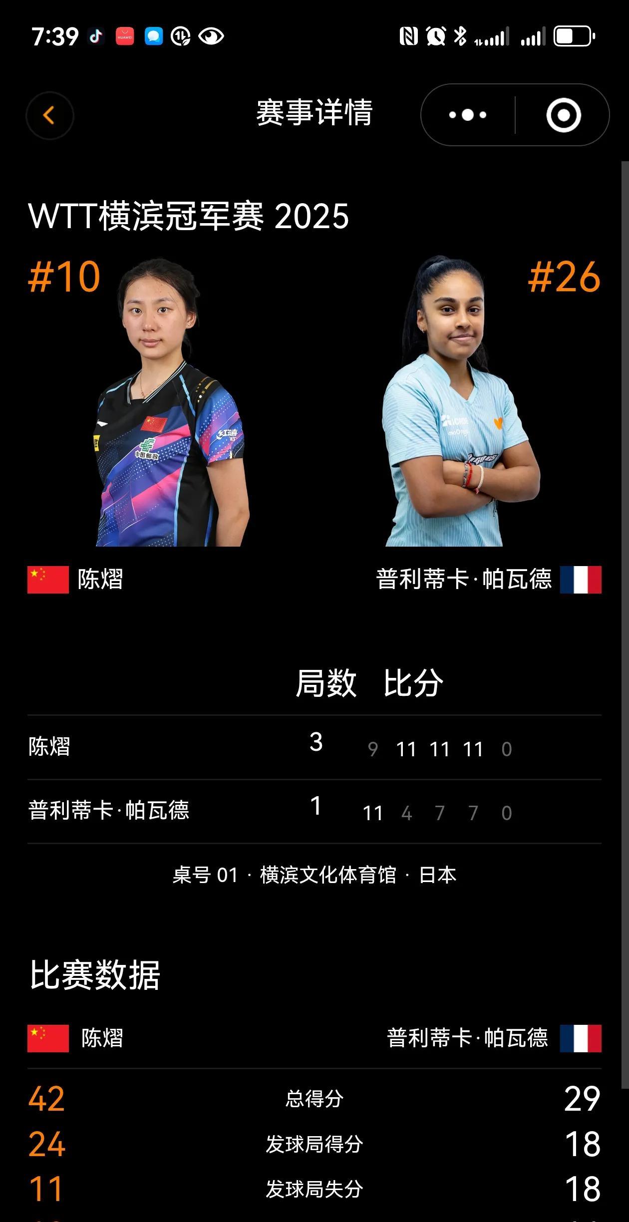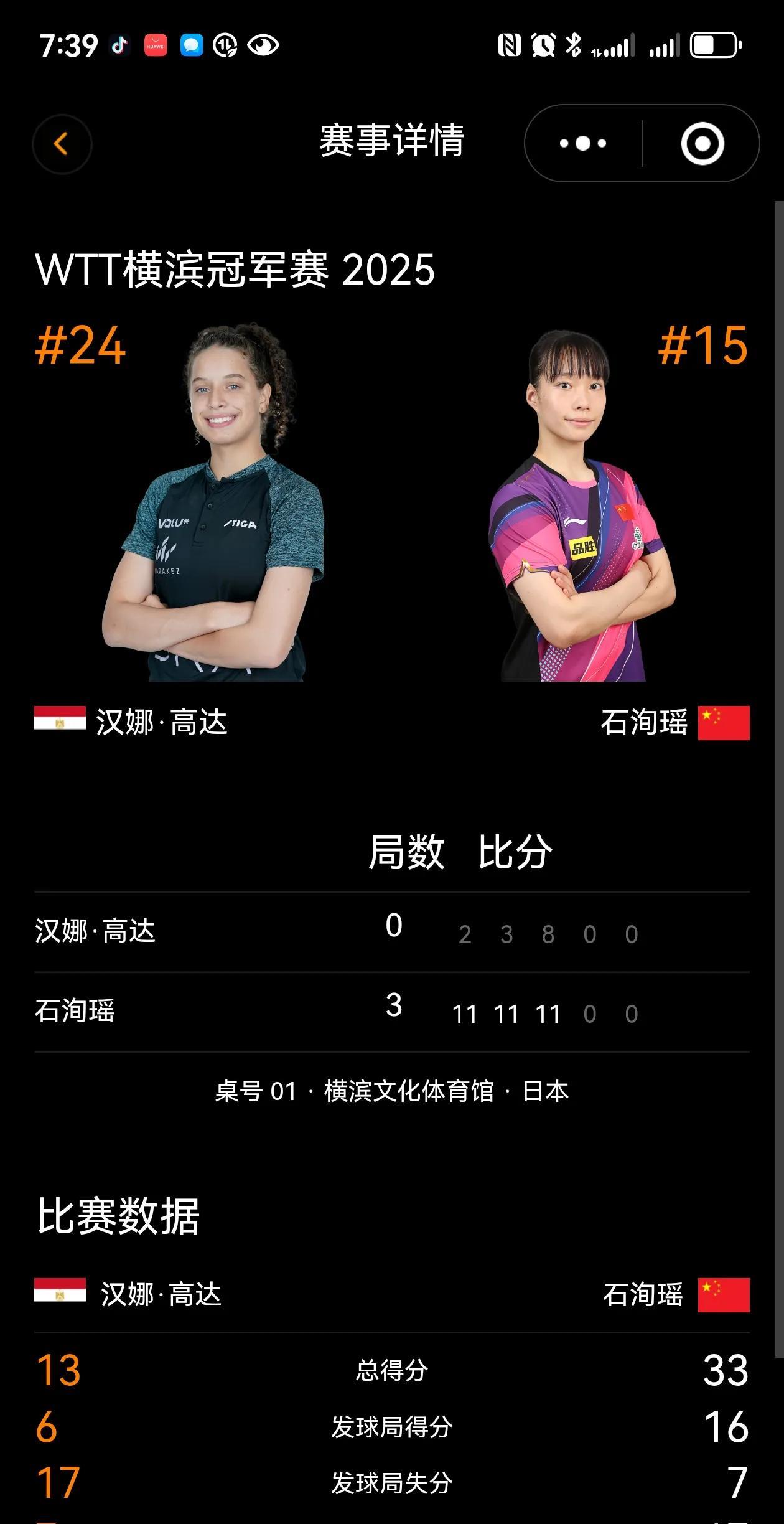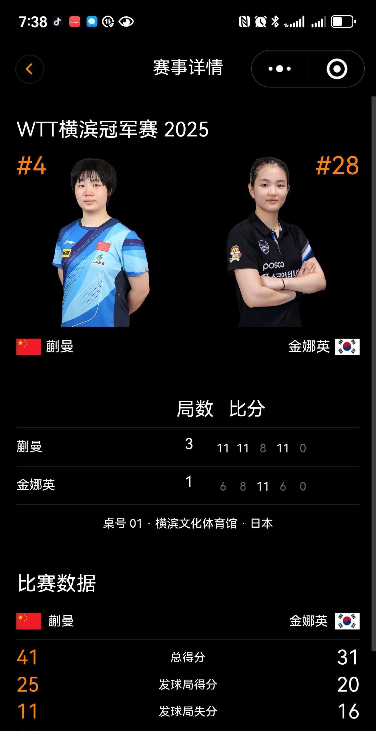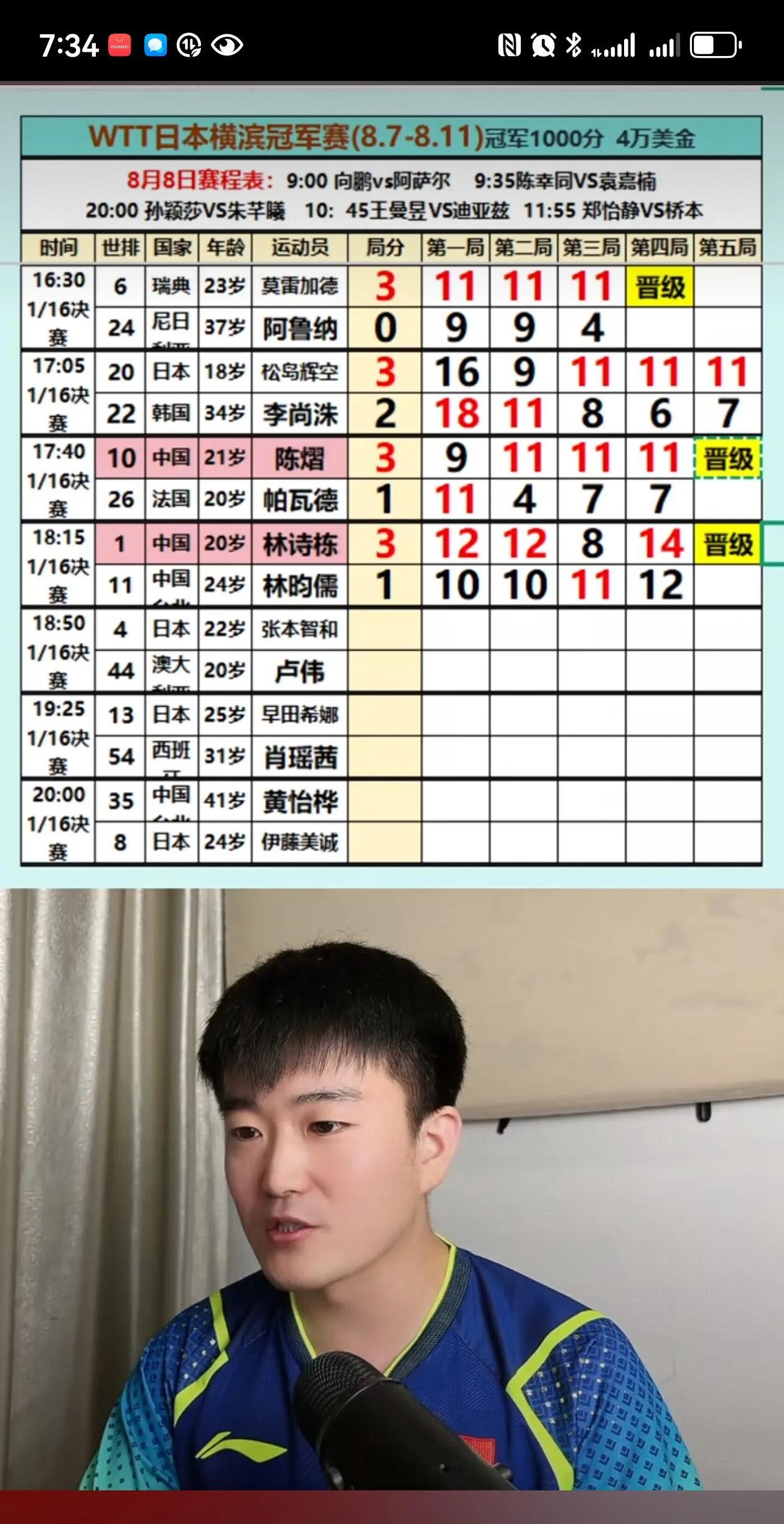 WTT横滨冠军赛2025:8.7-11,8.7首日比赛,开门红了,男单薛飞2:3惜败瑞典卡尔伯格,内战陈垣宇0:3不敌王楚钦,无缘16强。林诗栋3:1林昀儒,蒯曼3:1金娜英,王艺迪3:2大逆转法国温特,石洵瑶3:0高达,陈熠3:1帕瓦德,晋级16强。