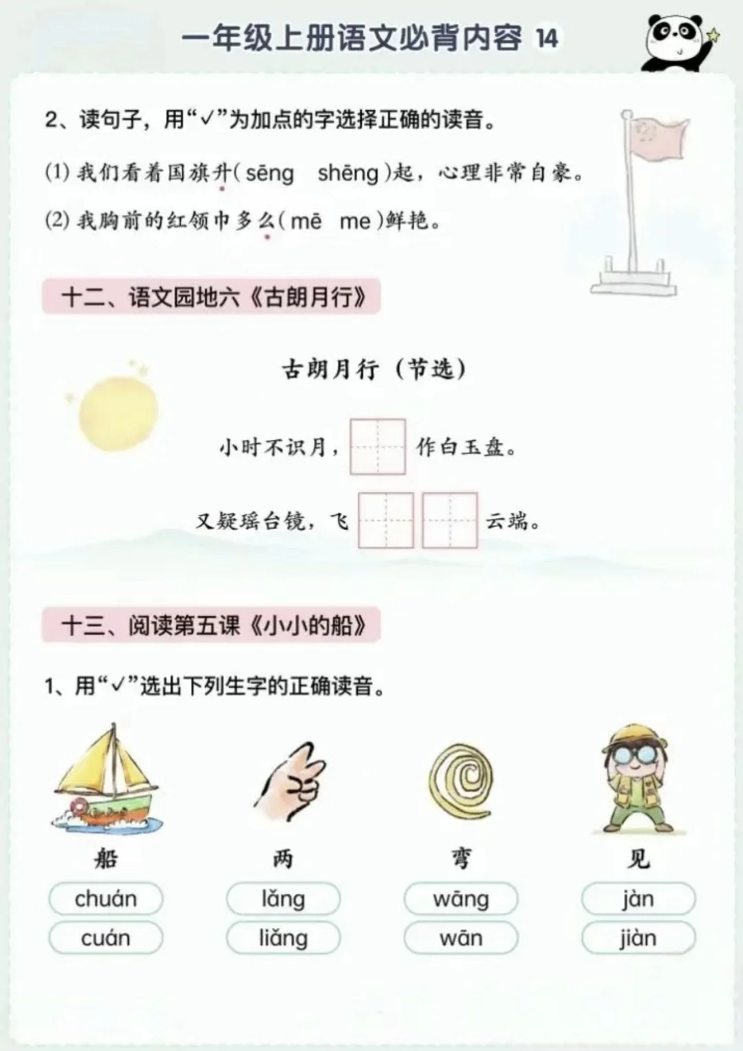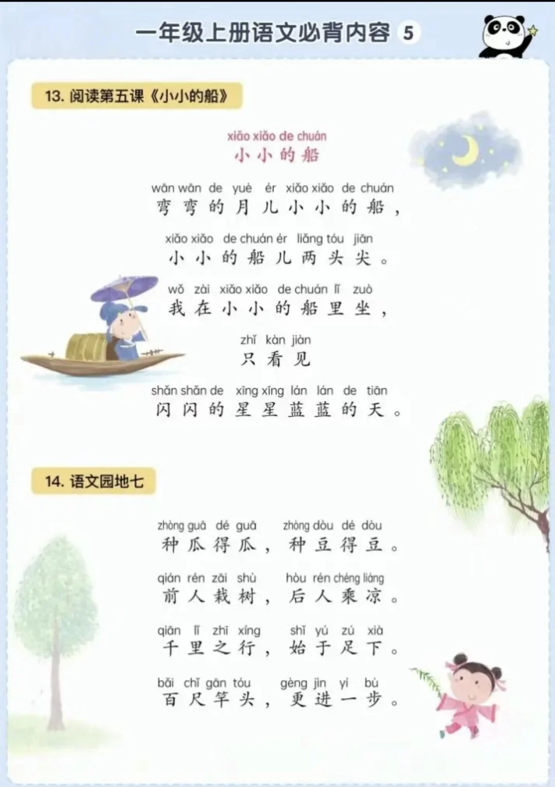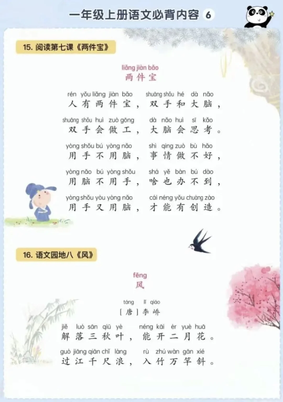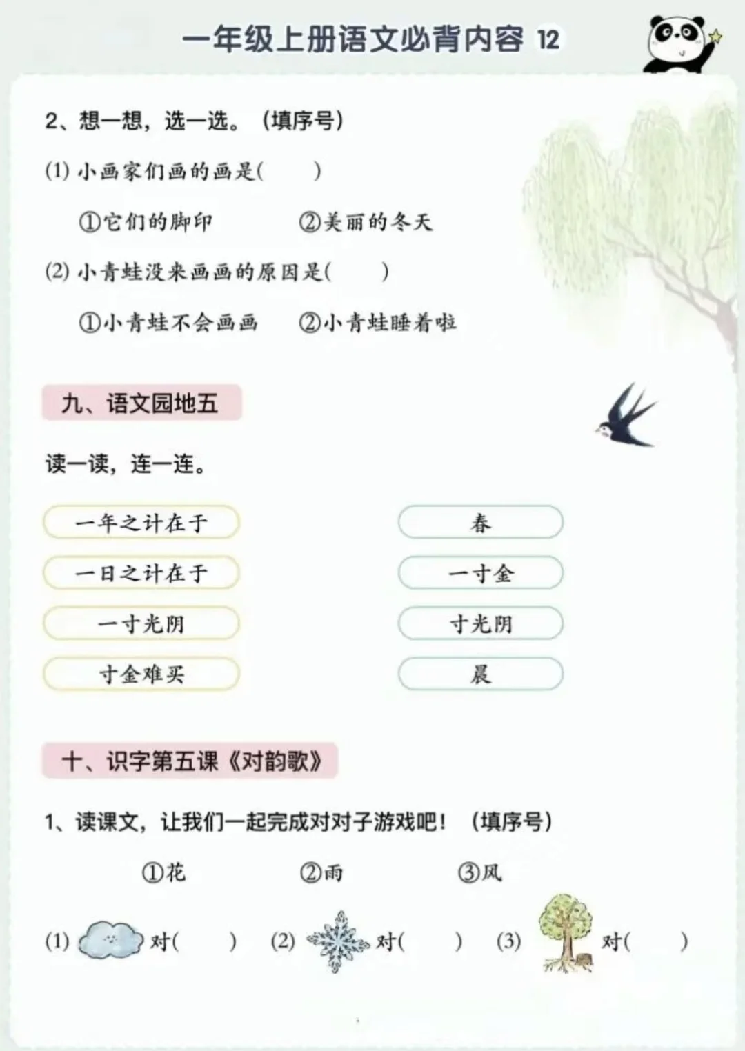 语文背诵闯关表|🌈1上~6上,让背书有趣