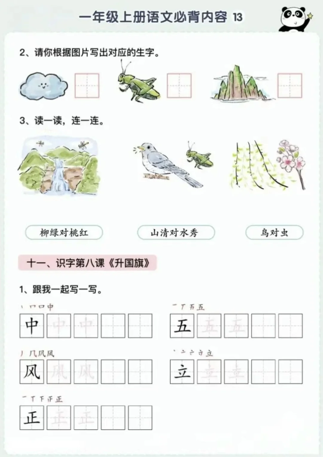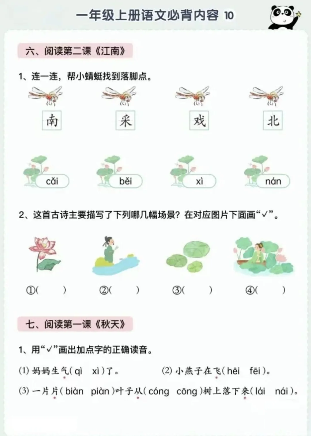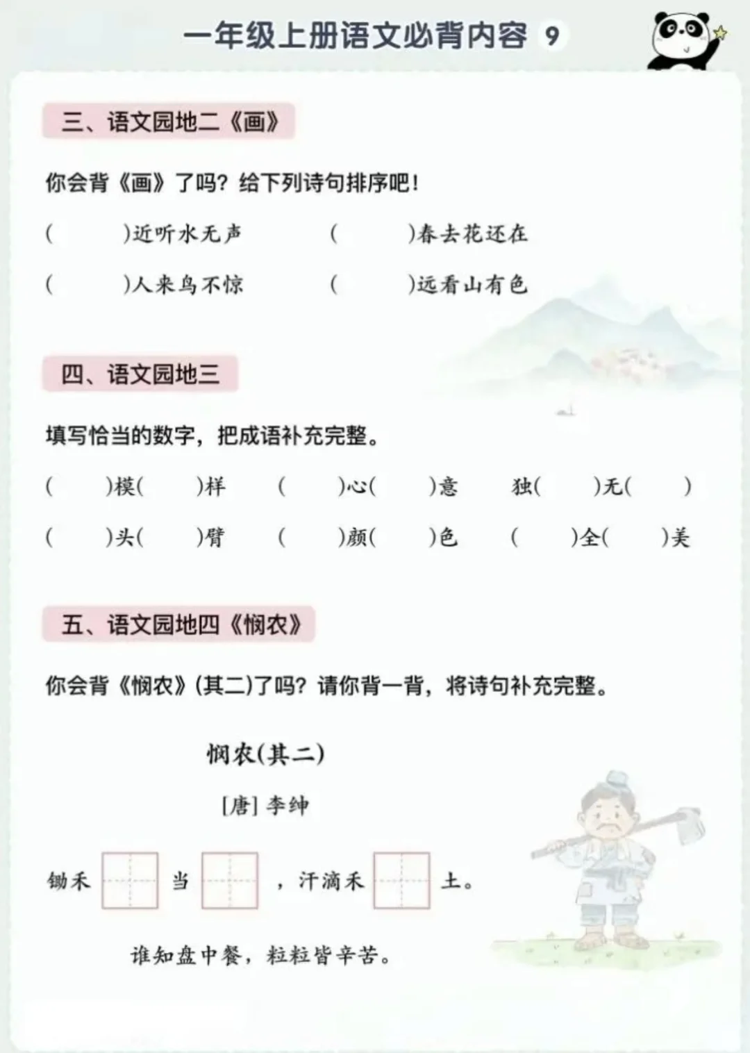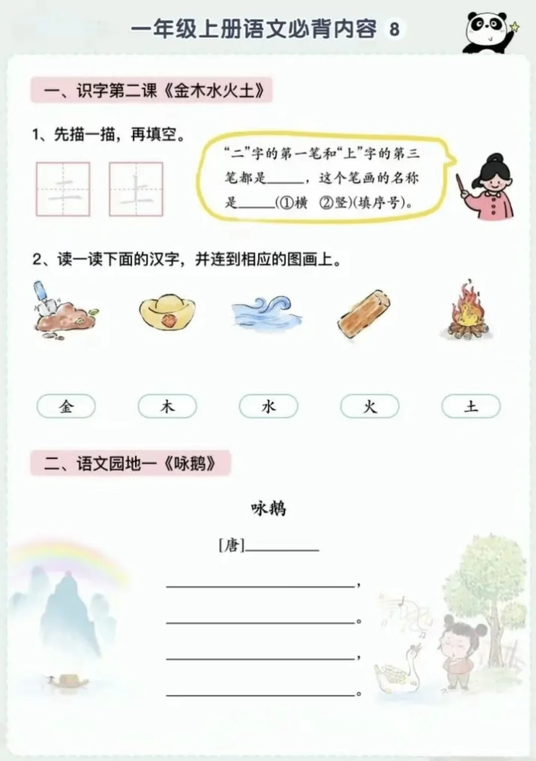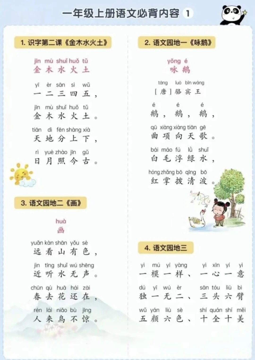 语文背诵闯关表|🌈1上~6上,让背书有趣