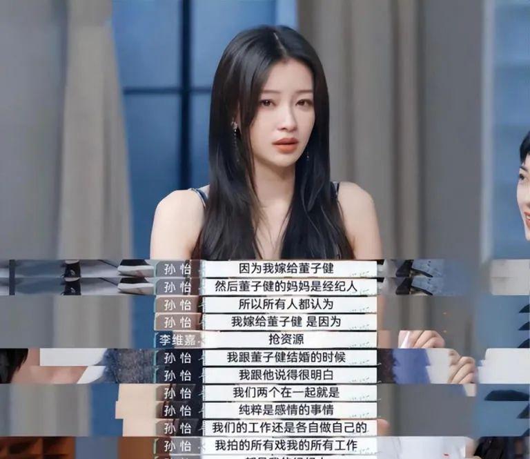 孙怡现在最应该做的事就是:停嘴。 我要是她,绝对不谈前夫,更不会提起关于前婆家的任何事情。 自从离婚后,孙怡的影视资源肉眼可见的下降了,近乎到了无戏可拍的地步。 好在,还有综艺节目肯邀请她,她可以用已婚的身份,在《再见爱人》《我家那闺女2025》《我家那闺女》等多个节目里,分享一下个人生活。 如果好好把握机会,人气上来之后进组拍戏,还是有机会转型成为实力派演员的。 可是不知道她怎么想的,在每个节目里,都无一例外的提前夫,提失败了的婚姻,提她的前婆婆。 归总下来,反复谈论的点只有三个:为爱结婚,感情没了离婚,没有利用前婆婆资源。 这些话,说一次观众会觉得好奇,有新鲜感,都愿意听一听; 但说的多了,大家就听腻了,甚至会反感诉说者。 孙怡,愣是因为这些话,被打上了营销上一段婚姻的标签,败光了观众缘,人气大跌。 反观她的前夫董子健,不解释不卖惨,安心演戏,拿下了影帝殊荣。 由此可见,娱乐圈,从来不是卖惨的地方,是看实力的职场。 身为艺人,与其向观众自揭伤疤博取同情,不如好好提升自己的专业能力,用成绩说话。 孙怡,现在最应该做的,就是在三十而立的年纪,利用好手中的资源,把每一次出镜都当成逆袭的机会,认真经营自己。 而不是无休无止的谈论她那一段失败的婚姻。 你说是不是?