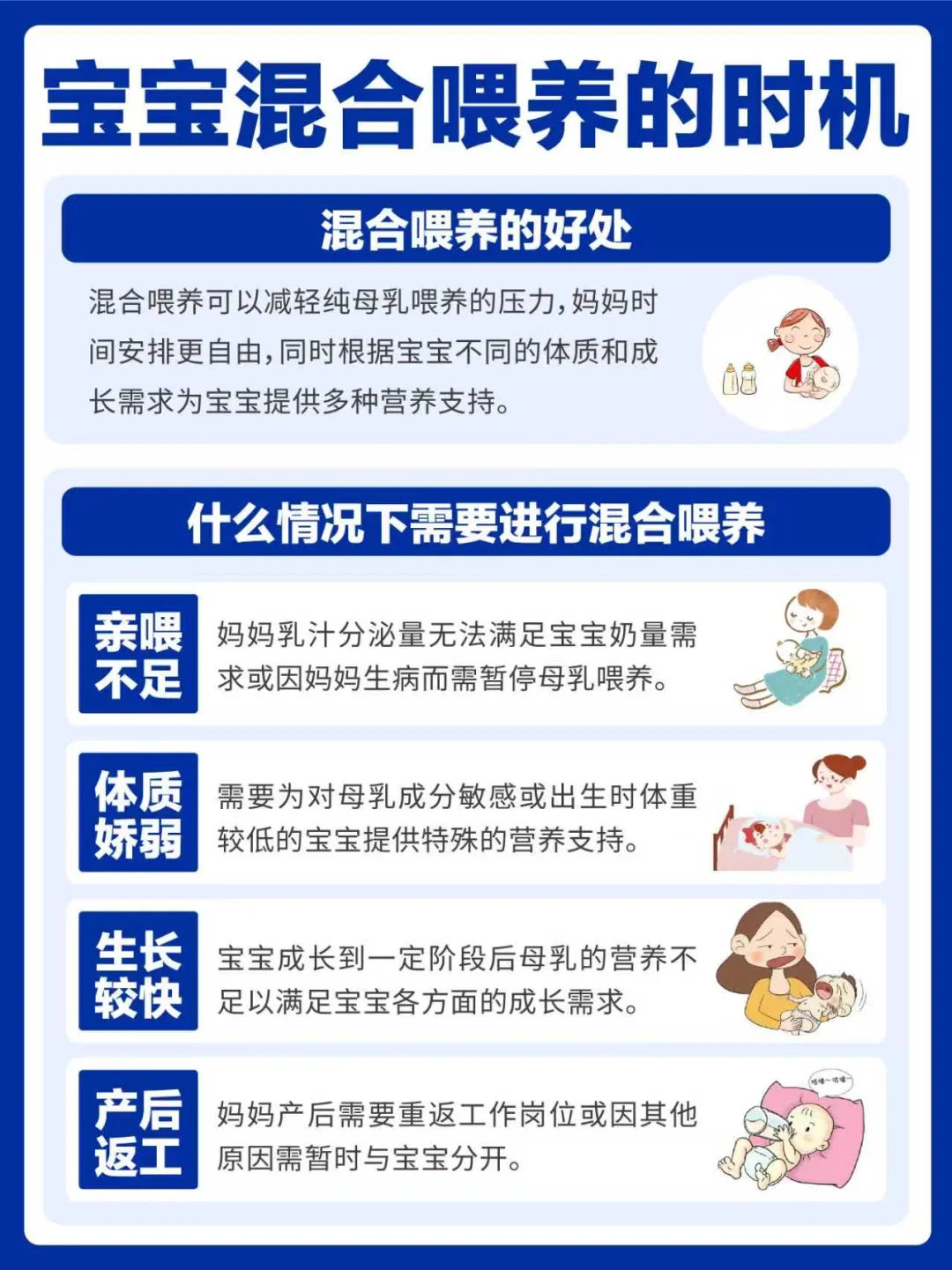 妈妈奶量不足、宝宝营养需求特殊、妈妈需外出都需要考虑混合喂养。