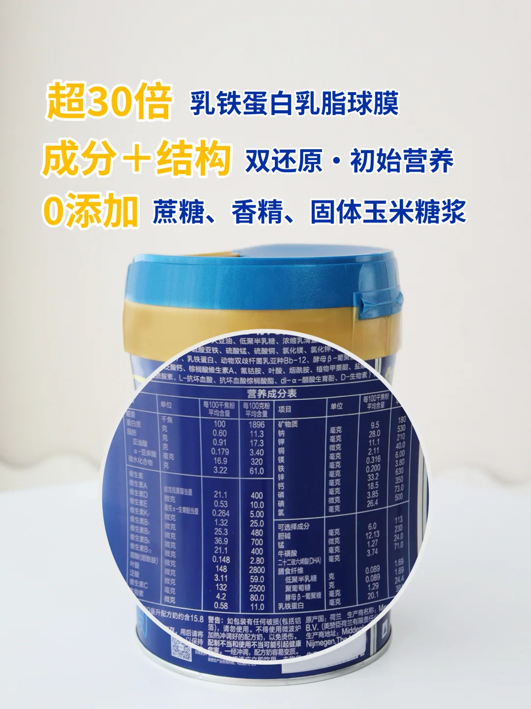 作为*首款【双乳配方】的奶粉,美赞臣蓝臻在成分+结构上做到了全面还原,成分上有足量人体初始营养中含量最高的核心防御蛋白——乳铁蛋白,为混喂期宝宝量身打造坚固防护盾,结构上添加了富含700多种活性蛋白质、初始营养独有的结构——乳脂球膜,为宝宝的智体成长打牢坚实基础