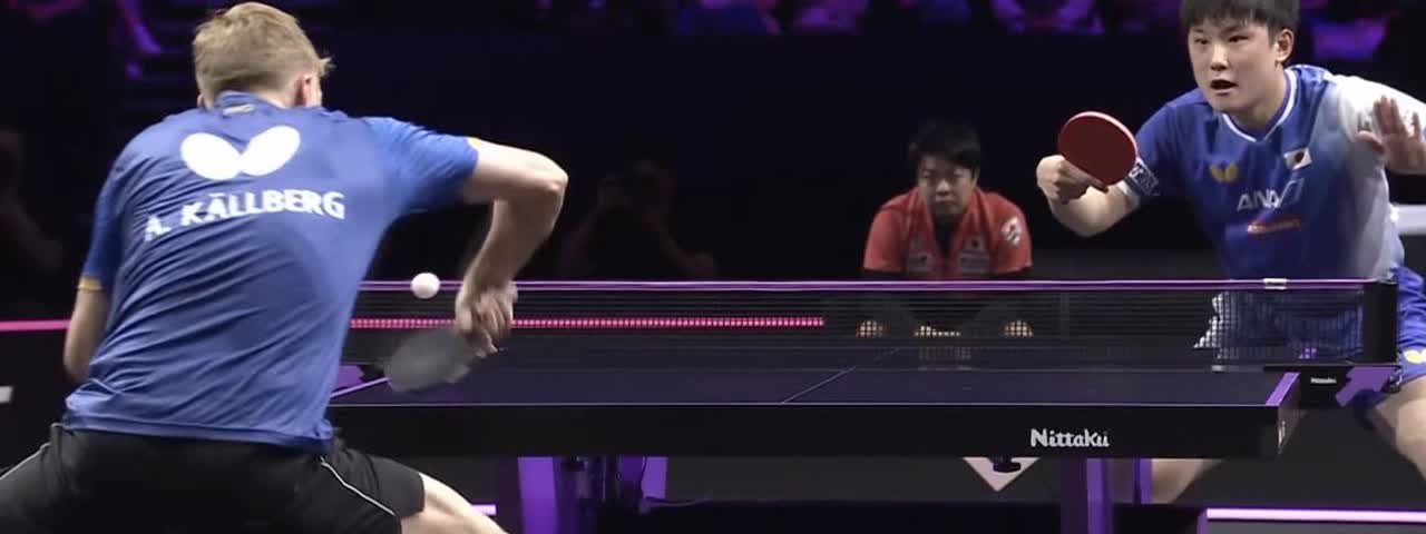 2025日本横滨冠军赛 男单八强晋级赛 日本🇯🇵张本智和以3:0横扫瑞典🇸🇪安东·卡尔伯格,晋级男单八强。 三局比分为:11:5、11:5、14:12。 这场比赛张本智和也是超常发挥了,而卡尔伯格很多失误,正手失误太多了。基本沒打上。