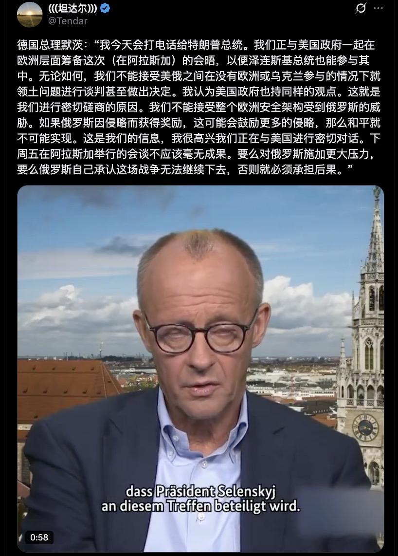 美俄阿拉斯加谈话,乌克兰也上桌,讽刺的是,欧洲成了那个“菜单”。 万斯说特朗普说服了普京,让泽连斯基参与谈话,美国正在安排一次三方会谈。而欧洲吭哧吭哧干了许多活,自以为能左右乌克兰的命运,结果发现自己不是主角。这就是欧洲的尴尬现状。欧洲被彻底抛弃了,法国人说:“欧洲必须参与”,德国人大声高呼“我们不能接受…”。然并卵。欧洲必须接受现实。万斯在最后还羞辱了一把欧洲:“这是你们的后院,你们必须承担分费用”,但你们不是上桌的那位。#美俄高层谈判# #阿拉斯加会谈# #美俄会晤会导致乌克兰被“瓜分”吗# #欧洲在美俄阿拉斯加会晤中有何作用#
