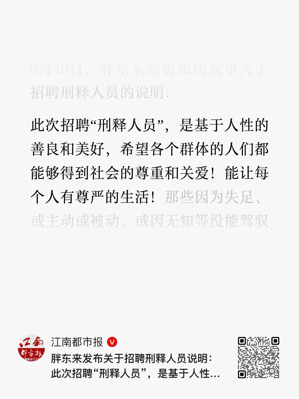 招聘刑释人员这事儿,让我看到了国内企业的人文关怀。其实在国外,不少国家早有类似实践。美国推行“第二次机会”项目,沃尔玛、星巴克等企业积极响应,每年吸纳上万名刑释人员;英国的连锁品牌TIMPSON从12年前开启为刑满释放人员提供岗位的项目。。。 胖东来迈出了勇敢的一步,希望更多企业能跟上,一起让社会变得更加包容。