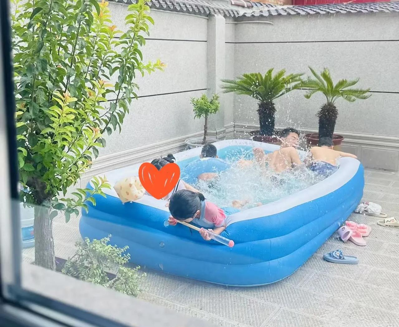 这两天搬进了老爸自建的新宅子 趁暑假,我也体验了一把住小“别墅”的感觉。 老爸是个闲不住的人,这房子就是他退休后自己折腾的。当时可是全家人反对,这老宅子离城里开车还要十几分钟,我们都在外面工作,谁还会没事跑回农村去住。老爸说,你看你们的孩子放假了天天在楼上圈着,等我的小院建好了假期你们就可以回来随便造腾了。 历经两年,终于完工,老爸又在小院里给孩子们买了充气游泳池,这下小家伙们可以放肆地玩水了,更方便的是,孩子们可以在屋子里跳绳了,可以楼上楼下来回追跑了,比起在单元楼里,孩子们快乐太多了。