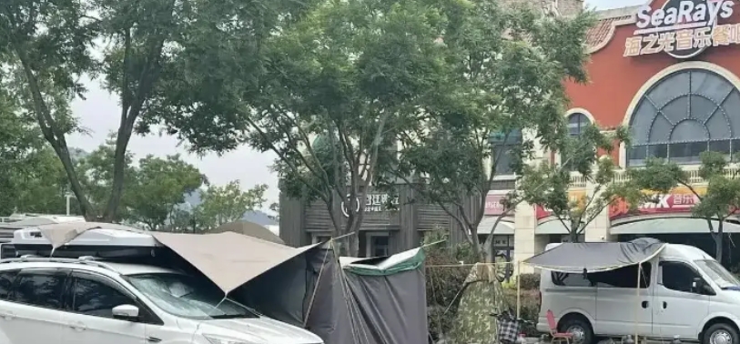 一般房车停车场的停车位都超大,允许伸缩遮阳篷扩展出来露营、做饭、吃饭,还会有供水供电设施,就是收费会比普通车辆贵一些。只要停车场允许,没有什么好指责的