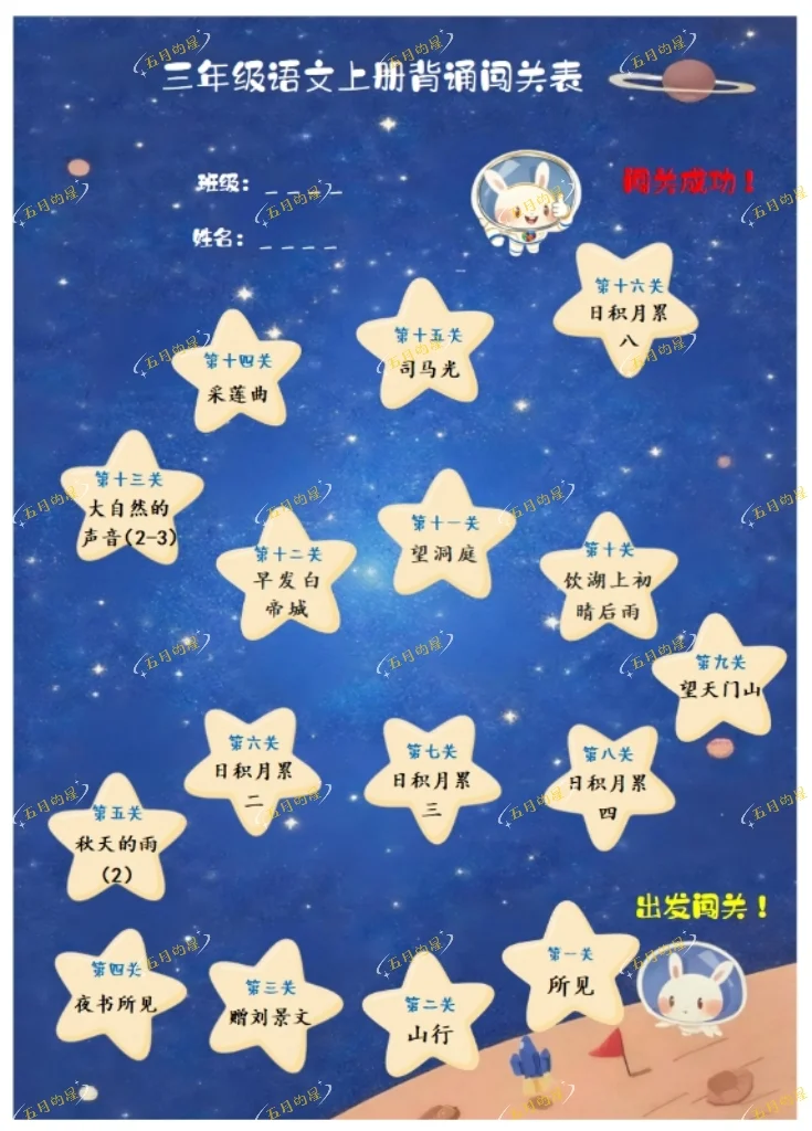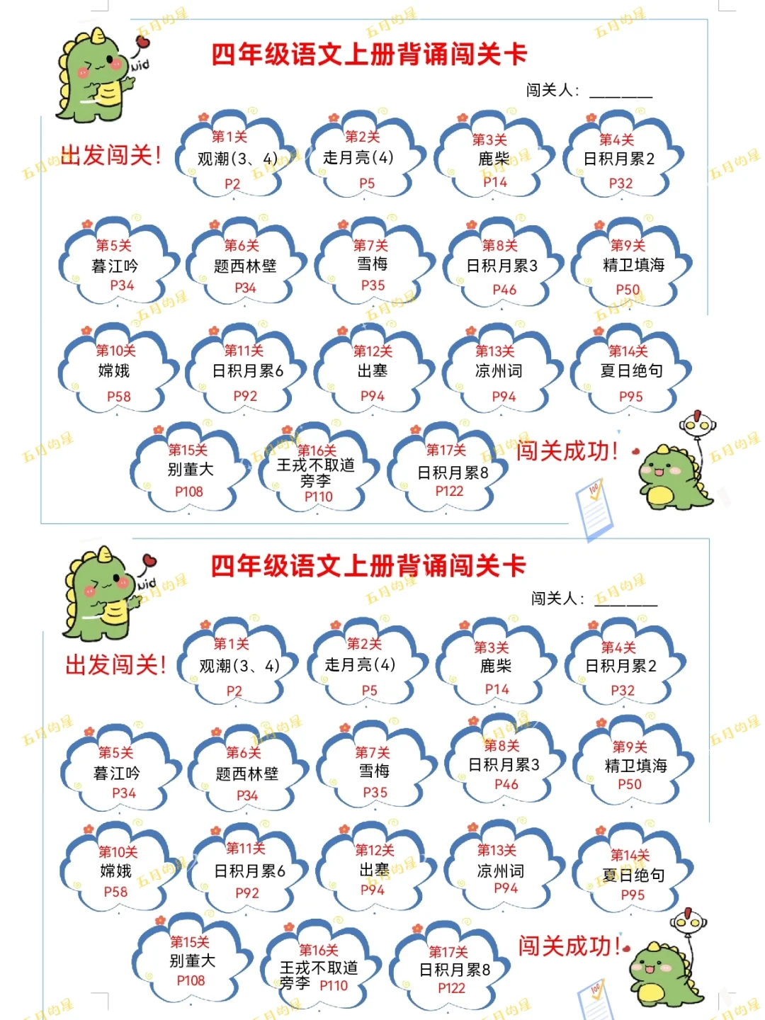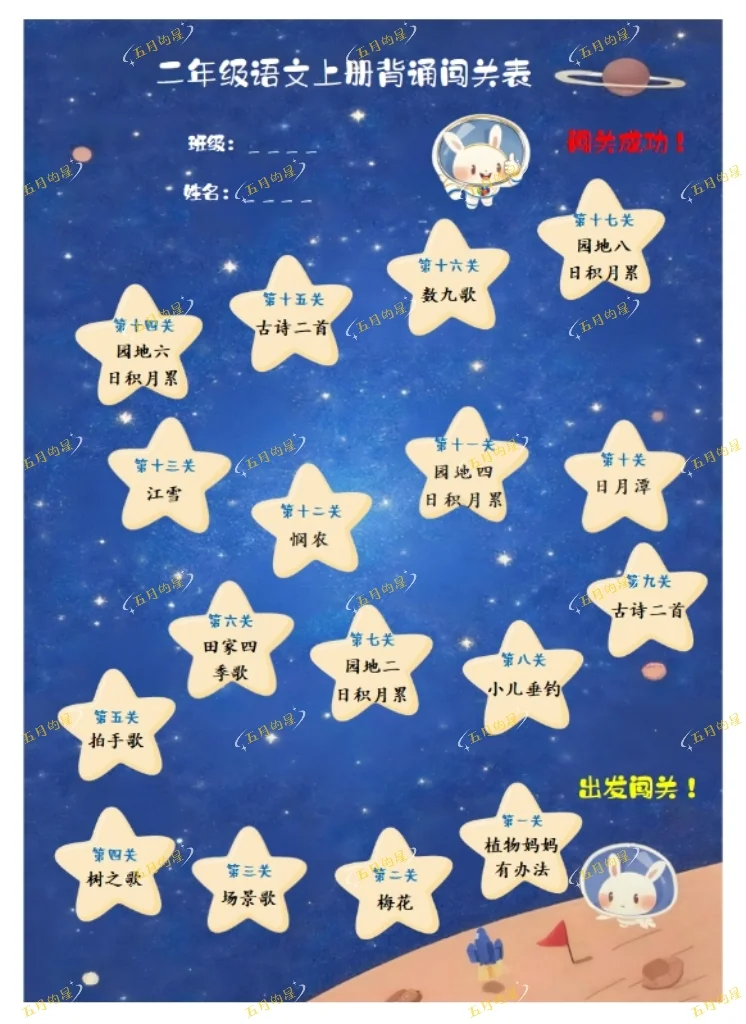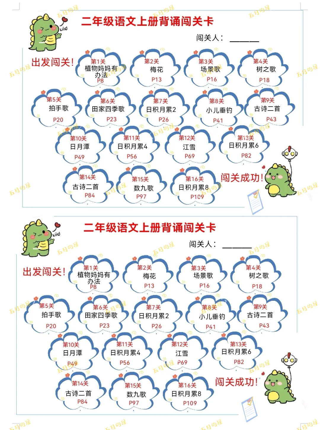 一上语文|🌈孩子们都喜欢的背诵闯关表~