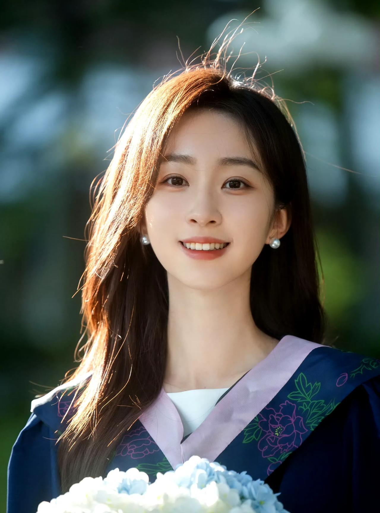 学士服裁下青春注脚,绣球花簇裹着晴光漫溢。发梢跳荡阳光碎金,笑涡盛着毕业甜意——这是校园序章的句点,亦是人生新途的冒号,所有奔赴,正当其时。