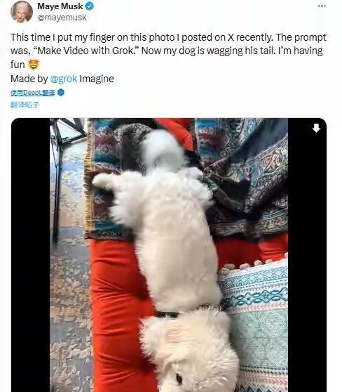 马斯克的妈妈不断发帖, 为儿子的AI新应用grok imagine叫好。