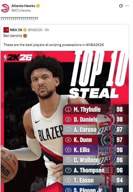别再错怪约基奇了 掘金自媒体DNVR今日质疑约基奇在NBA2K26抢断评分中未进