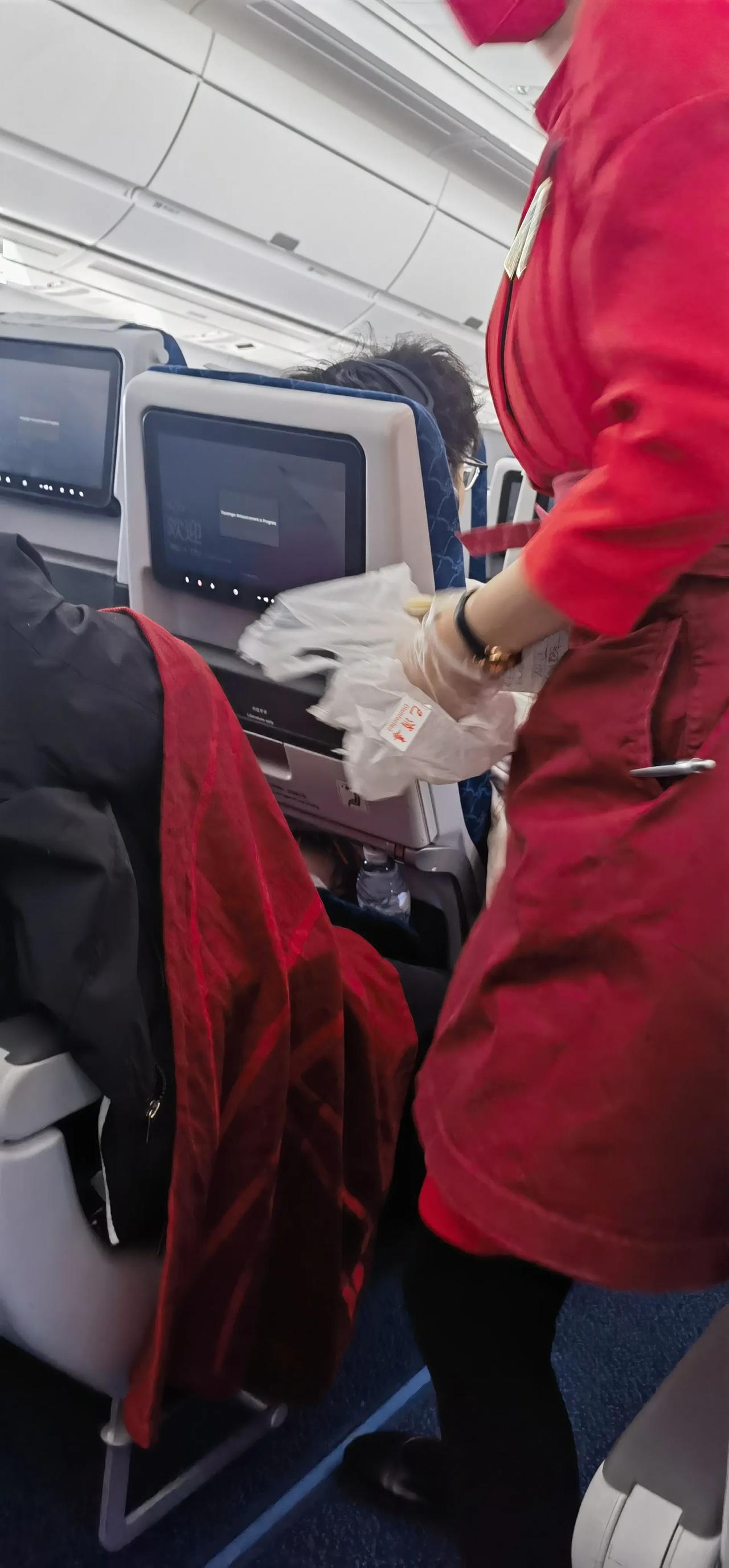 前两天坐飞机从北京去成都途中,乘客自然入睡,服务员怕乘客入睡期间着凉,悄悄给他披