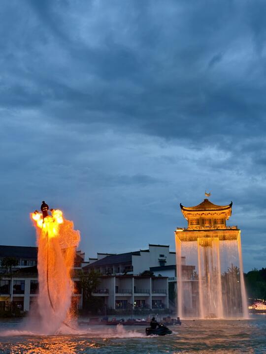 2⃣水上火壶:以前觉得打铁花都很绝了,现在发现水上火壶更震撼!