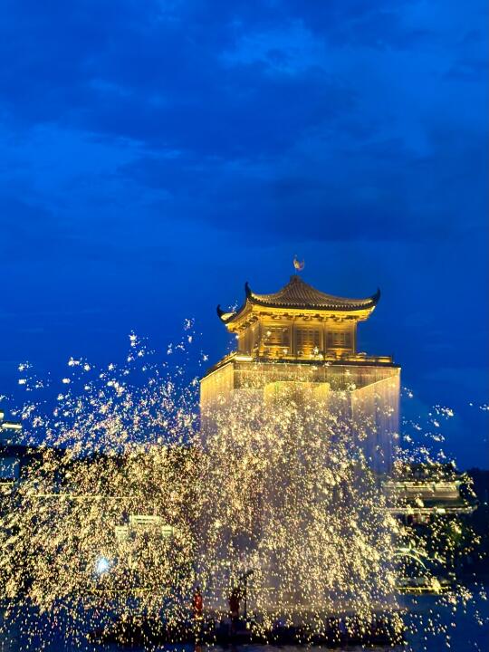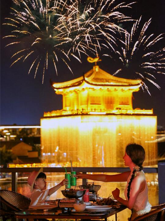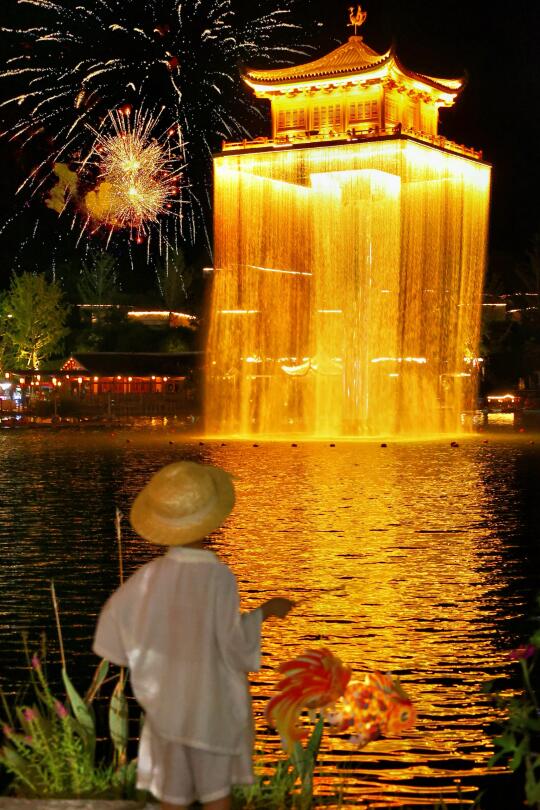 🌃晚上赏烟花、看打铁花、水上火壶等